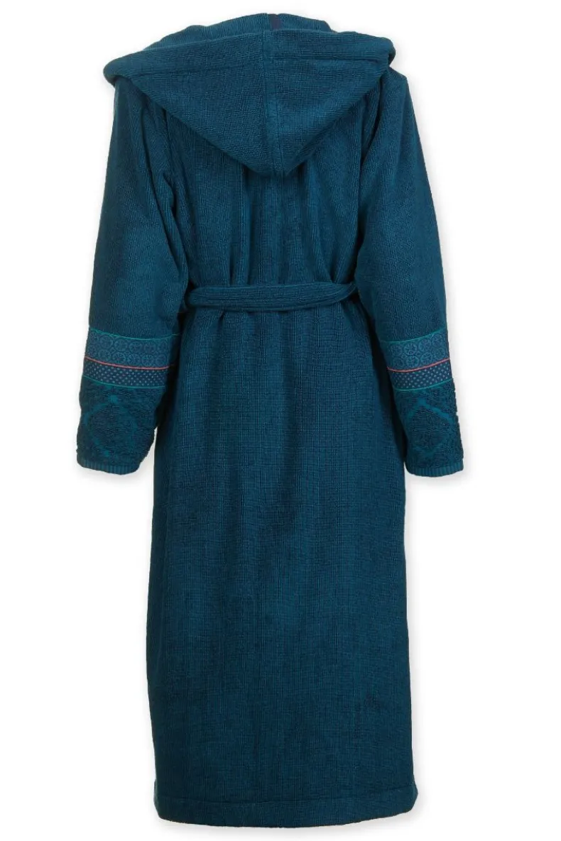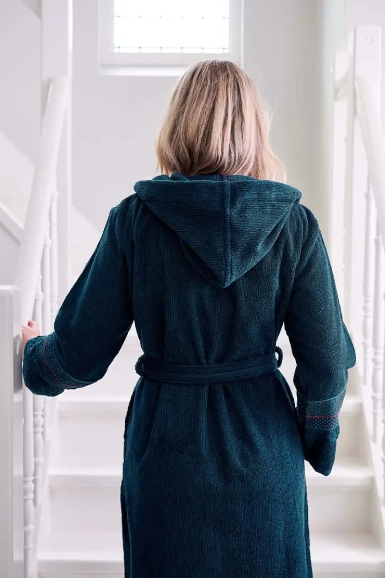 Wikkel Jezelf In Deze Donkerblauwe Zachte Soft Zellige Badjas Met Streepjes Dessin In Donkerblauw En Blauwgroen Voor Een Fijn Gevoel Thuis. Aan De Uiteinden Van De Mouwen Zitten Drie Biesjes In De Kleuren Blauwgroen En Roze. Daar Tussenin Zitten Twee Verschillende, Stijlvolle Jacquard Geweven, Bloemenpatronen In De Kleuren Donkerblauw En Blauwgroen. De Mouwen Hebben Een Gestreepte Boordafwerking In Donkerblauw En Blauwgroen. De Badjas Heeft Een Capuchon, Steekzakken En Sluit Je Met Een Lang Ceintuur. De Soft Zellige Badjas Is Gemaakt Van 100% Hoogwaardige Katoen Jacquard, Waardoor De Badjas Super Zacht En Stevig Aanvoelt. Door Het Hoogwaardige Materiaal Heeft Uitstekende Vochtabsorberende, Ademende En Sneldrogende Kwaliteiten.