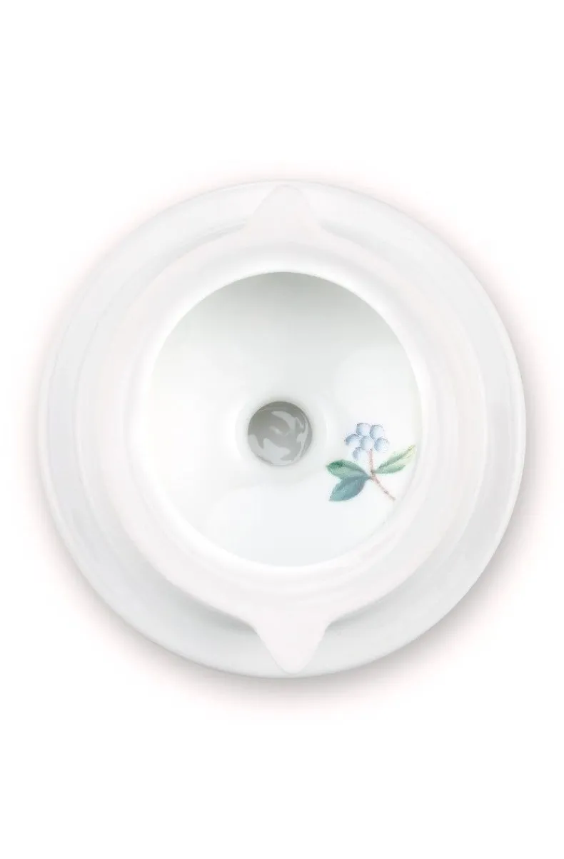 Deze Grote Blauwe Theepot Is Versierd Met Exotische Bloemen, Een Vogel En Gouden Details. Op De Ondergrond Zie Je Een Verfijnd Dessin En Bovenop De Deksel Zit Een Porseleinen Roos. Vormt Een Mooie Combinatie Met Het Theeservies Uit De Blushing Birds Collectie.