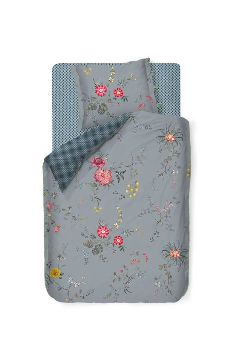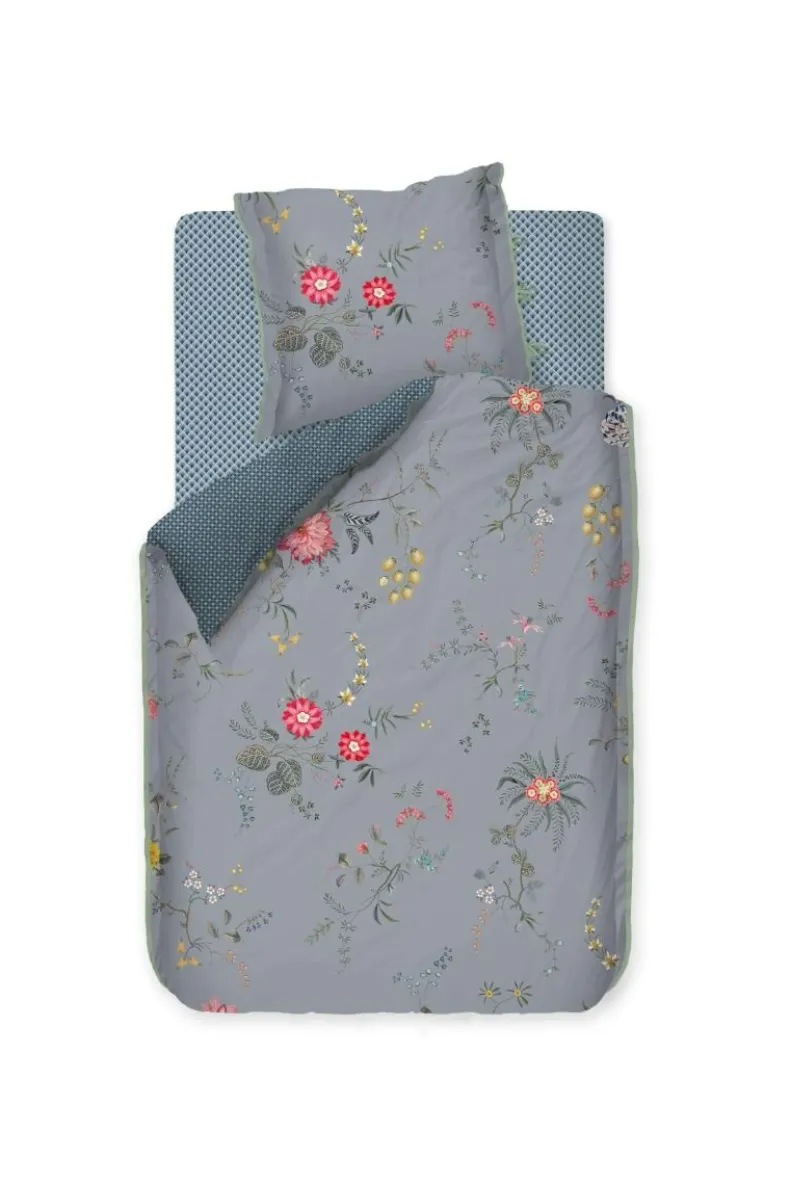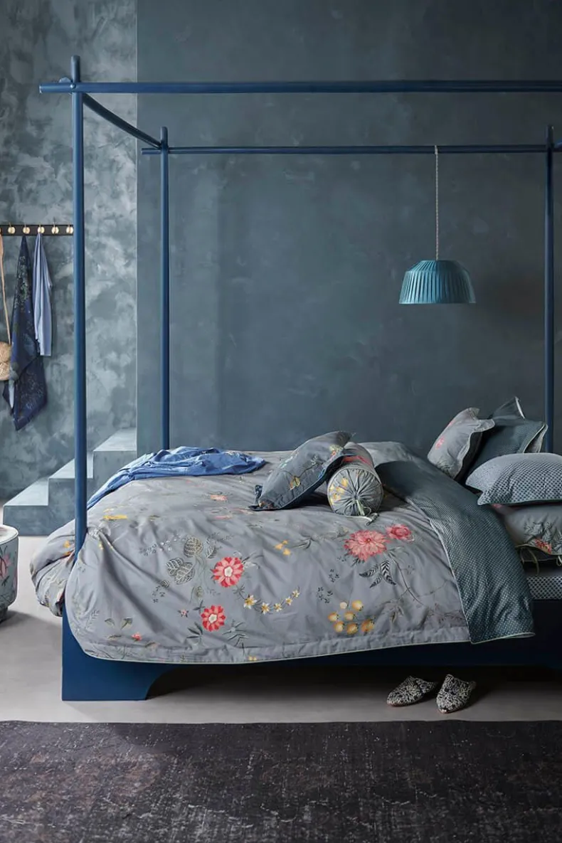 Dit Mooie Dekbedovertrek In Het Blauw Is Geprint Met Het Fleur Grandeur Dessin. Deze Print Is Opgebouwd Uit Elegante Siertakken En Fantasie Bladeren. Het Dekbed Bevat Een Doorgestikte Rand, Striksluiting En Is Afgewerkt Met Een Gekleurde Bies. De Achterkant Is Geprint Met Een Boogjes Dessin, Hierdoor Kan Het Kussen Dubbelzijdig Gebruikt Worden.