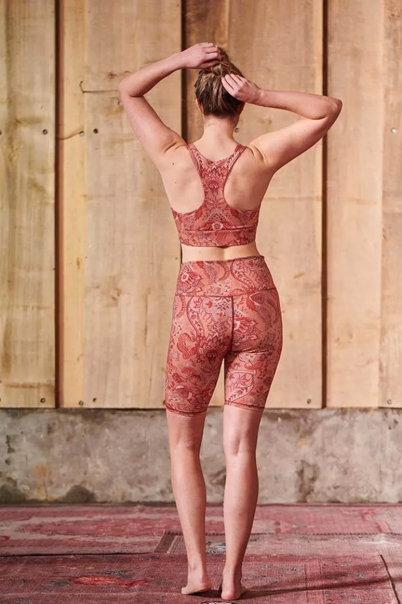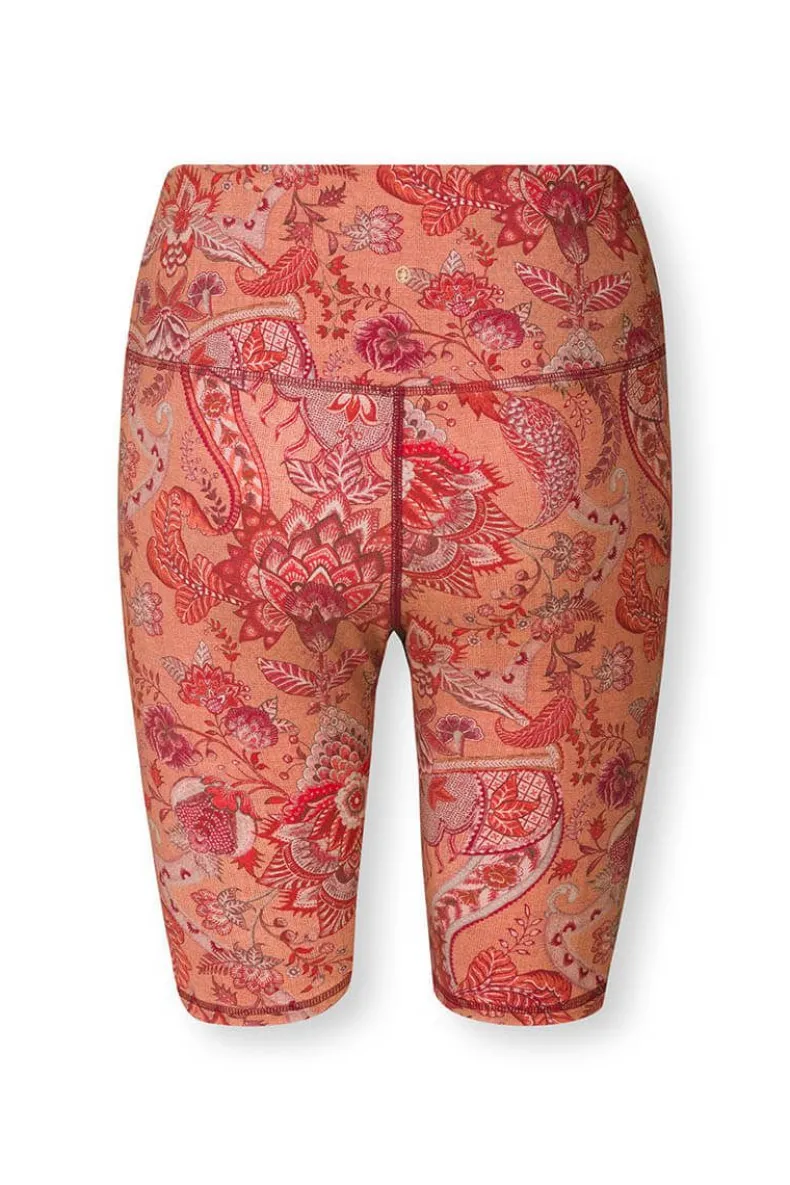 Deze Korte Sportbroek In Het Terra Roze Is Uitgevoerd Met Het Vrolijke Kyoto Festival Dessin. Het Herhaalde Bloemdessin Is Opgebouwd Uit Een Variatie Van Fantasierijke Chintz Bloemen En Bladeren. De Legging Is Gemaakt Van Een Elastische Stof Voor Een Comfortabele En Flaterende Fit.
