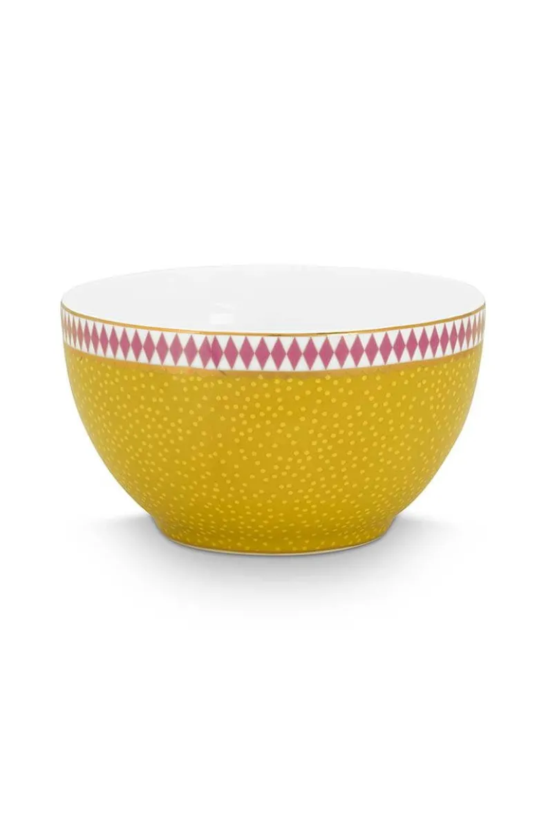 Deze Kom Is Versierd Met Een Gele Dessin, Exotische Bloemen En Gouden Details. Vormt Een Mooie Combinatie Met De Rest Van Het Servies Uit De La Majorelle Collectie.