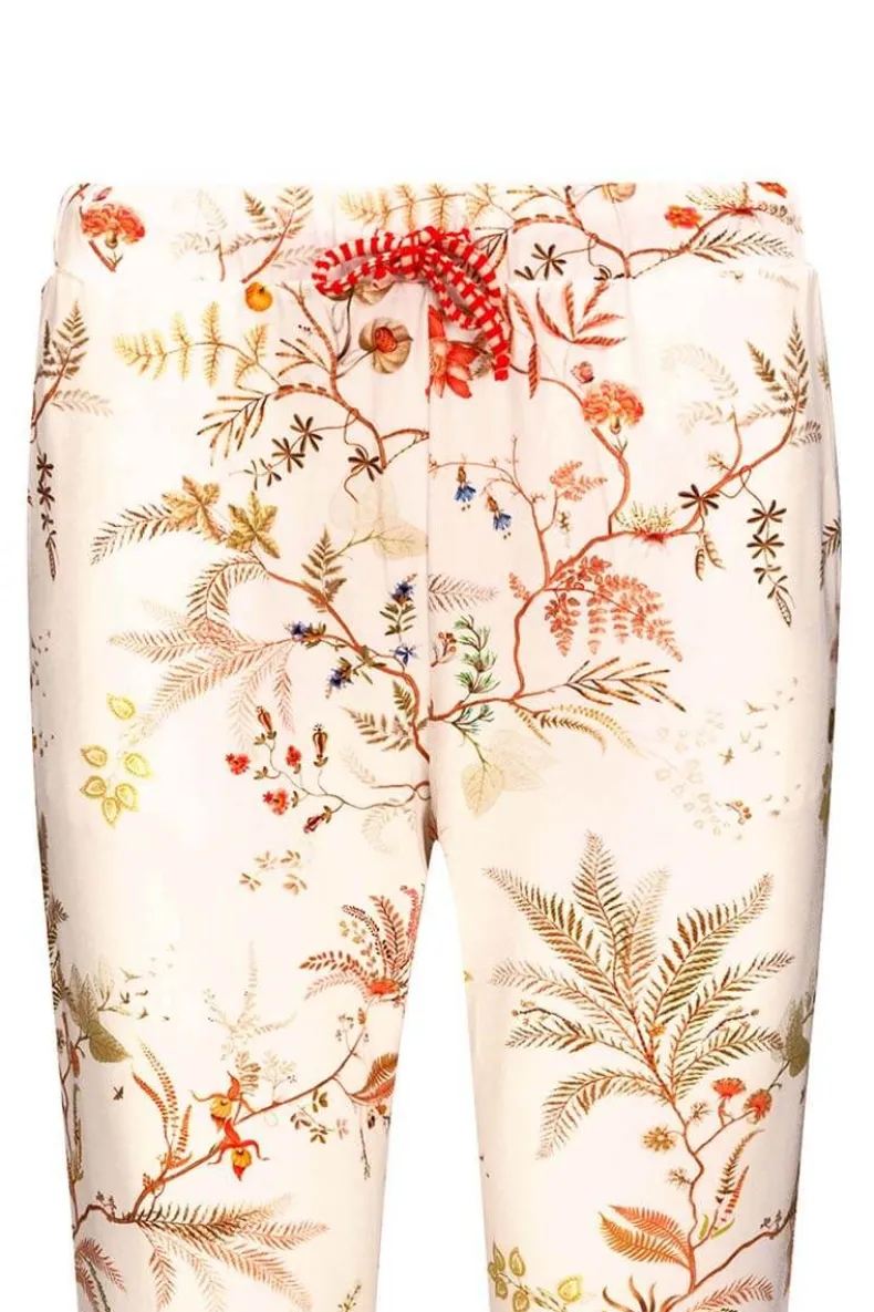 Deze Lange Broek In Het Wit Is Uitgevoerd Met Het Sierlijke Isola Dessin. De Meerkleurige Print Bestaat Uit Een Variatie Van Takjes En Varens. Het Dessin Heeft Een Uitgesproken Karakter Door De Combinatie Van Kleuren. Gemaakt Van Viscose En Elastane Waardoor De Broek Heerlijk Zacht En Stretchy Is. De Taille Is Elastisch En Heeft Een Koord Rondom Voor Een Comfortabele Fit. Mix En Match Deze Broek Met Items Uit De Nieuwe Homewear Collectie Voor Een Mooie Look.