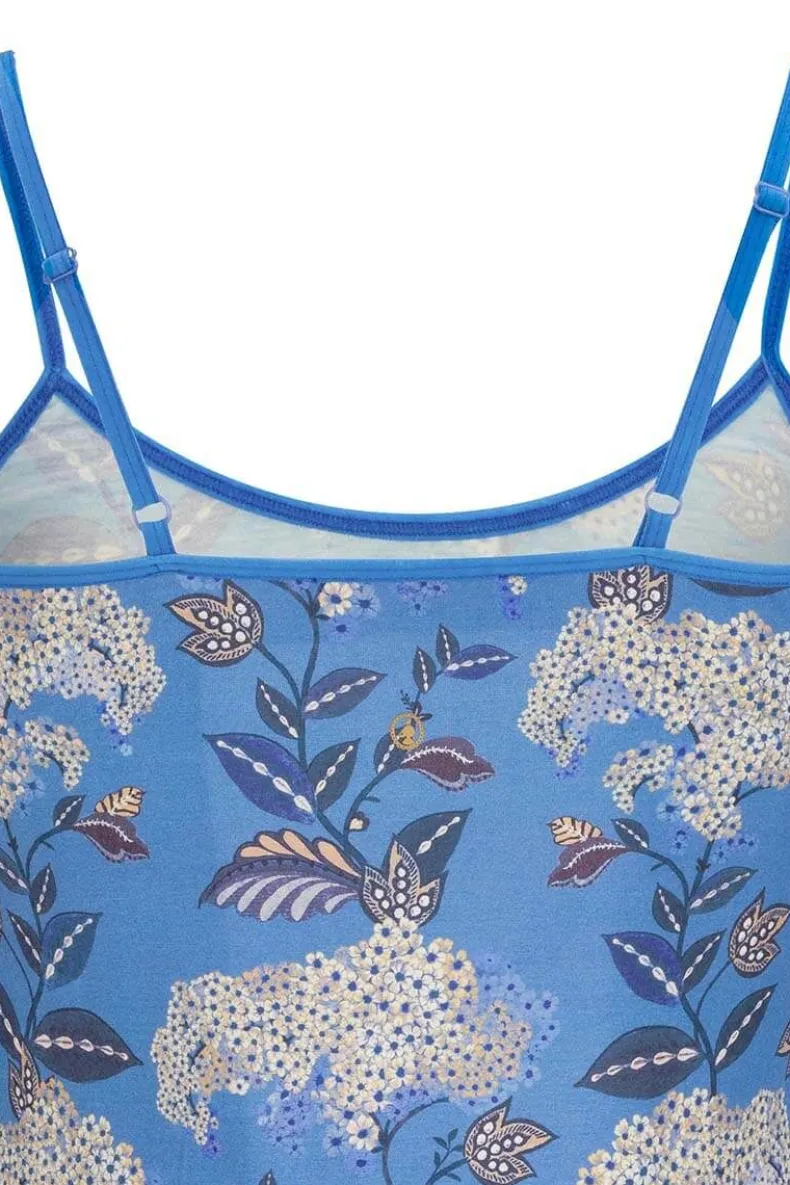 Een Perfecte Top Voor Het Zomerse Weer En Gemakkelijk Te Dragen. Met Zachte Viscose En Elastane Voor Maximaal Comfort. De Kobaltblauwe Flora Firenze Slim-Fit Top Heeft Verstelbare Spaghettibandjes En Een Goudkleurig Biezendetail In Het Midden Van De Hals.