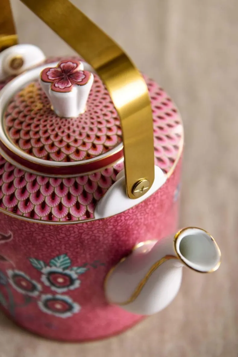 Vul Je Servies Aan Met Deze Flower Festival Theepot. Deze Theepot, Geinspireerd Op De Aziatische Cultuur, Heeft Een Donkerroze Achtergrond En Is Versierd Met Het Elegante Flower Festival Dessin. Dit Rijke Bloemendessin Is Opgebouwd Uit Een Variatie Van Fantasierijke Rode En Roze Chintzbloemen Met Lichtblauwe En Groene Bladeren. Met Ons Flower Festival Porselein Zul Je Jouw Servieskast En Tafel Laten Stralen.