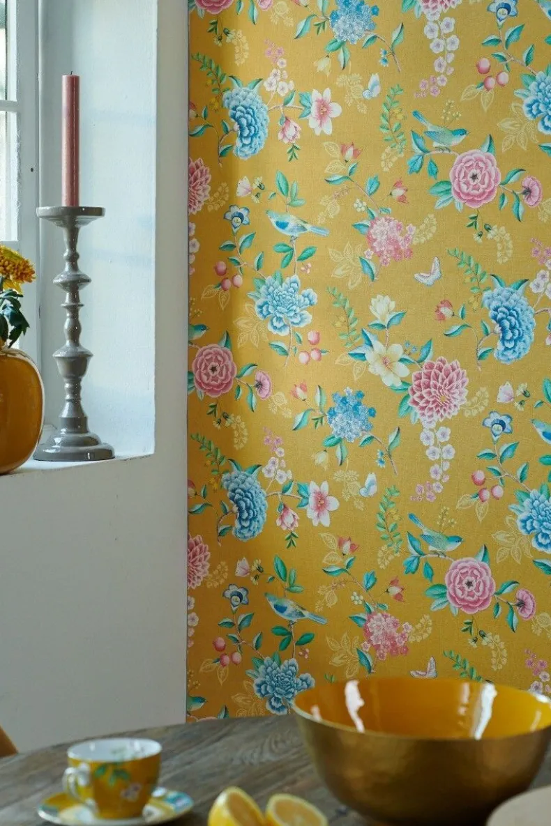 Wat Het Gele Good Evening Dessin Een Blikvanger Op Je Muur Maakt? Het Bloemen Dessin Good Evening Is Een Prachtig Groots Dessin Op Vinyl Met Kleurrijke Bloemen En Tropische Vogels. De Print Is Geinspireerd Op Traditionele Orientaalse Muurschilderingen. Door De Structuur Van Het Behang Lijkt Deze Haast Een Prachtige Stof Die Op De Wand Is Aangebracht. Het Good Evening Dessin Is Makkelijk Te Combineren Met Bijna Alle Andere Dessins Uit De Collectie, Waardoor Er Een Leuk Mix & Match Effect Ontstaat. Het Pip Studio Good Evening Behang Is Verkrijgbaar In Verschillende Kleuren Zoals Geel, Wit, Zand, Petrol, Licht Blauw, Rood En Groen En Creeert Een Vrolijke Sfeer In Je Huis.