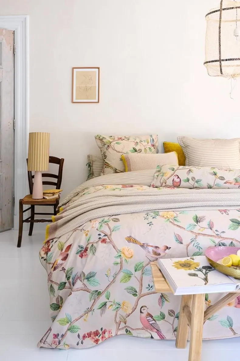 In Het Vrolijke Dessin Van Het Sierkussen Good Nightingale Verschuilen Zich Tussen Takken En Bloemen Unieke Vogelsoorten. Elk Vogeltje Heeft Een Fantasierijk Verenkleed Met Stipjes En Streepjes. Het Subtiele Stipjespatroon Op De Achtergrond Geeft Het Dessin Extra Diepte. De Achterkant Heeft Zandkleurige Horizontale Strepen. Het Sierkussen Heeft Aan Een Zijde Een Doorgestikte Oxford Rand En Aan De Andere Zijde Een Unieke Striksluiting. Het Kussen Kan Tweezijdig Gebruikt Worden.