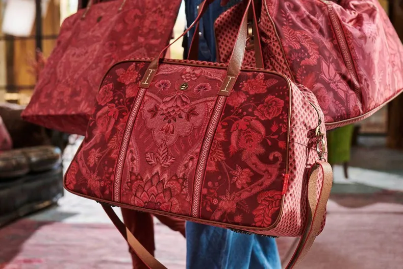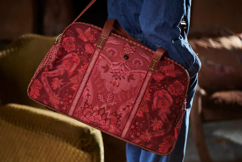 Ga Op Reis In Stijl Met Deze Reistas Uit De Kyoto Festival Collectie. De Reistas Is Versierd Met Een Unieke Variatie Van Fantasierijke Chintzbloemen En Bladeren En Heeft Naast Twee Grote Opbergvakken En Ook Meerdere Kleine Vakjes Aan De Binnekant Waarin Je Jouw Belangrijke Spullen Kunt Opbergen Zoals Je Telefoon Of Sleutels. Deze Reistas Mag Meegenomen Worden Als Handbagage In Het Vliegtuig.
