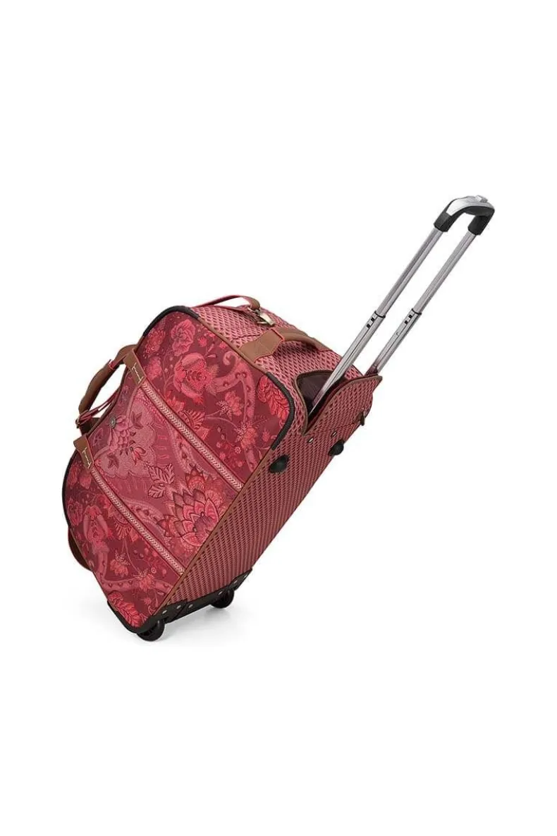 De Nieuwe Weekender Op Wielen In De Kleur Donkerroze Met Het Kyoto Fesitval Dessin Is Een Geweldige Aanvulling Voor Je Warderobe. Deze Weekender Heeft Een Groot Opbergvak Voor Je Kleding En Schoenen, Waarin 3 Zijvakjes Te Vinden Zijn. Een Met Rits En Twee Met Elastische Band. De Tas Is Waterafstotend Van Binnen En Buiten, Dus Perfect Voor Elke Weersvoorspelling. Hiernaast Kan Je Van De Weekender, Een Weekender Op Wielen Van Maken Door De Hendel Uit Het Opbergvak Te Halen.