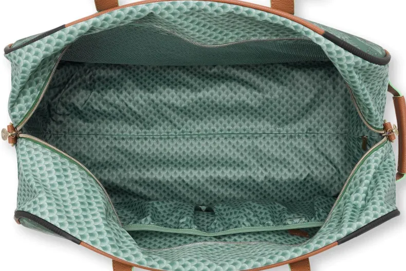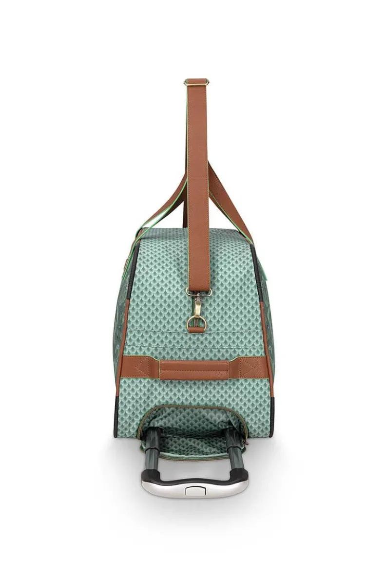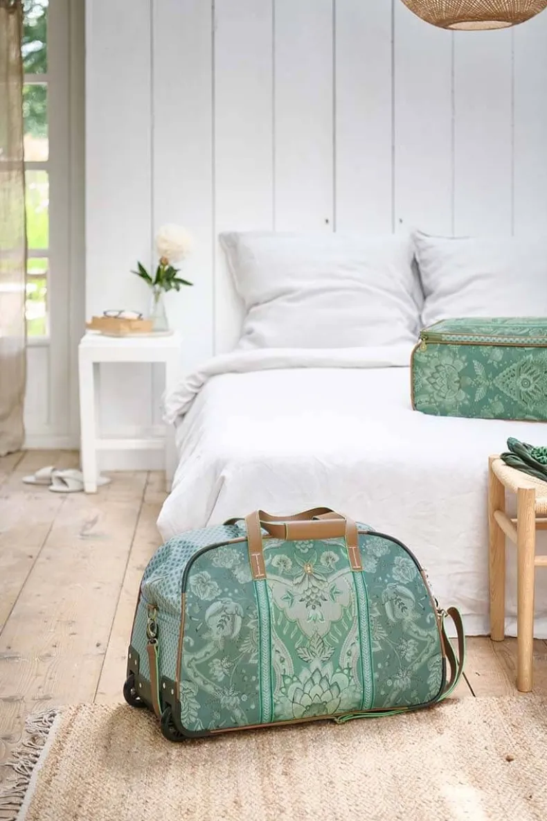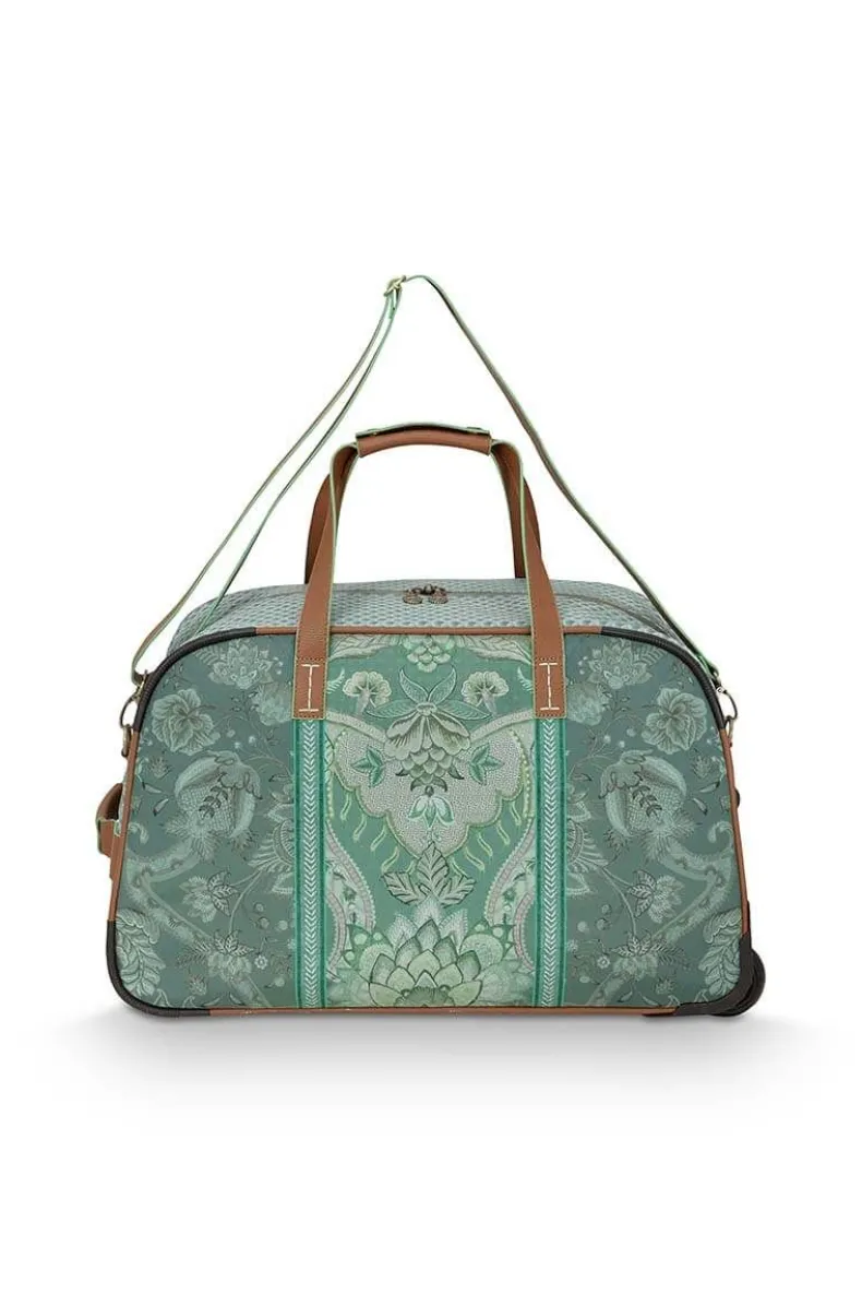 De Nieuwe Weekender Op Wielen In De Kleur Groen Met Het Kyoto Fesitval Dessin Is Een Geweldige Aanvulling Voor Je Warderobe. Deze Weekender Heeft Een Groot Opbergvak Voor Je Kleding En Schoenen, Waarin 3 Zijvakjes Te Vinden Zijn. Een Met Rits En Twee Met Elastische Band. De Tas Is Waterafstotend Van Binnen En Buiten, Dus Perfect Voor Elke Weersvoorspelling. Hiernaast Kan Je Van De Weekender, Een Weekender Op Wielen Van Maken Door De Hendel Uit Het Opbergvak Te Halen.