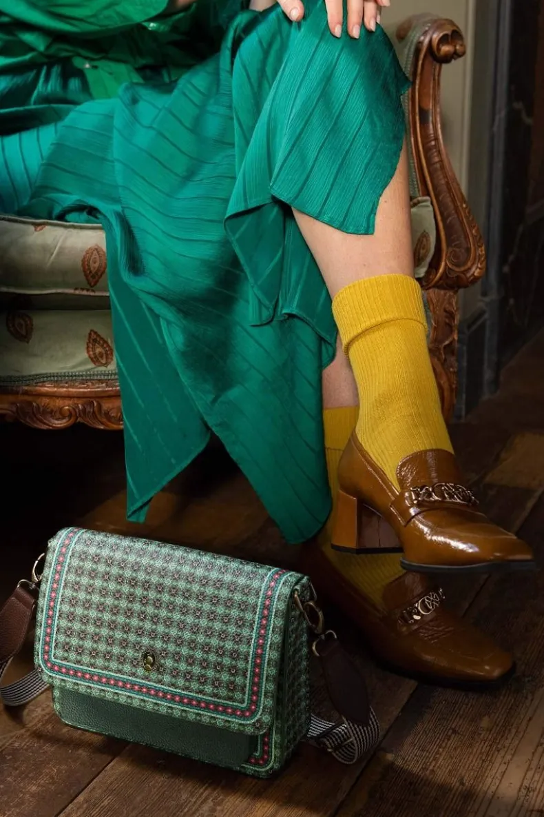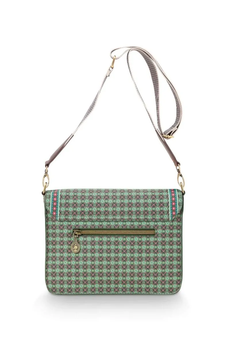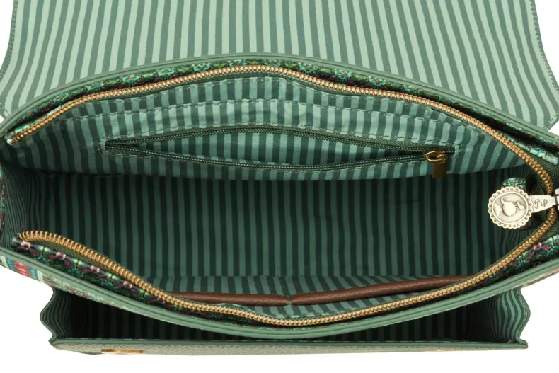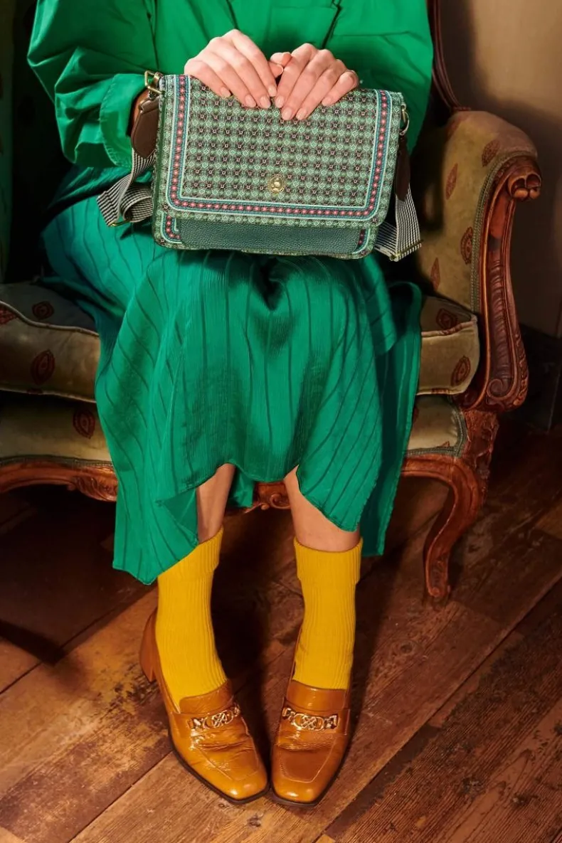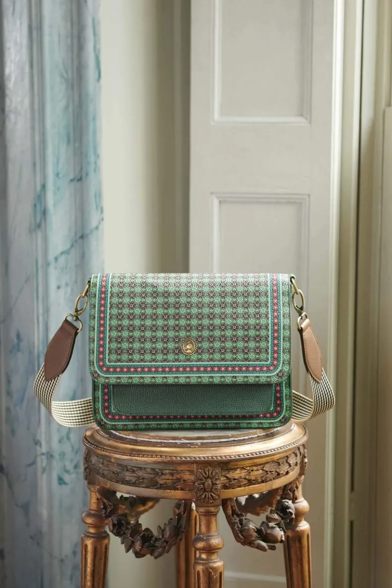 Ga De Deur Uit In Stijl Met Deze Groene Schoudertas Uit De Clover Collectie. De Schoudertas Is Versierd Met Een Herhaald Dessin Van Gestilleerd Klaveretjes En Heeft Naast Een Groot Opbergvak Ook Een Klein Vakje Aan De Voor- En Achterkant Waarin Je Jouw Belangrijke Spullen Kunt Opbergen Zoals Je Telefoon Of Sleutels.