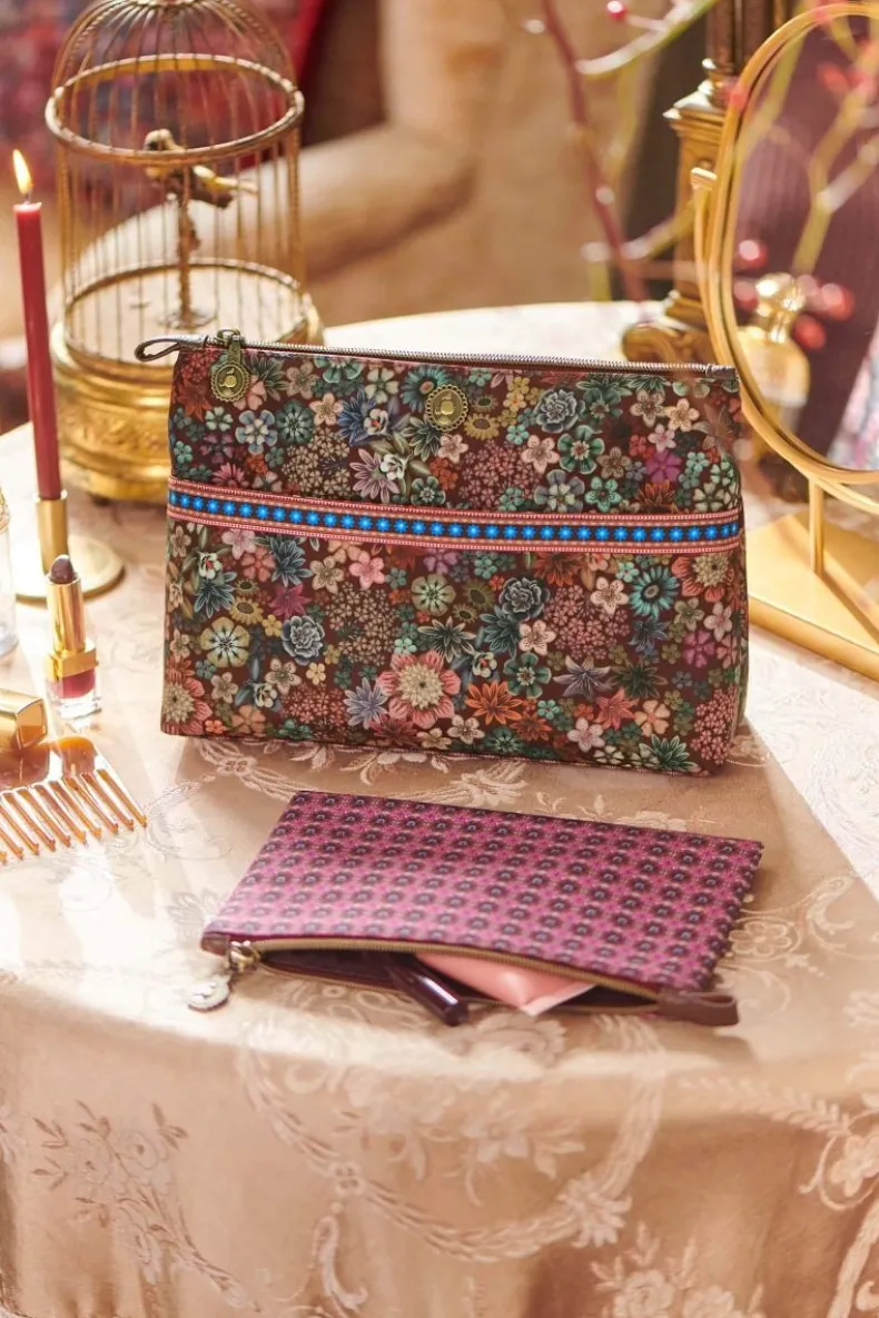 Met Deze Roze Toilettas Uit De Tutti I Fiori Collectie Heb Je Jouw Favoriete Verzorgingsproducten Altijd Binnen Handbereik. De Toilettas Is Versierd Met Met Een Unieke Variatie Van Fantasierijke Bloemen. De Toilettas Heeft Twee Vakken En Is Aan De Binnenkant Afgewerkt Met Een Dessin Van Gestileerde Klavertjes.