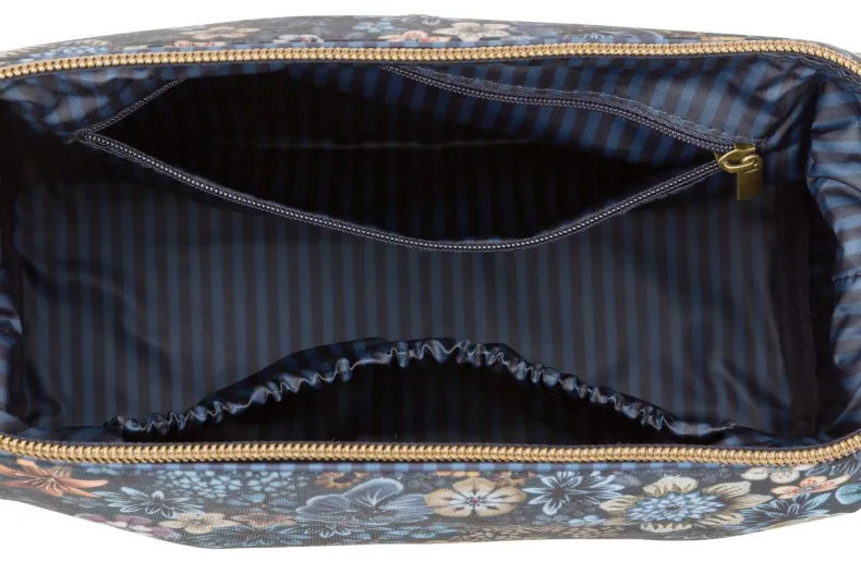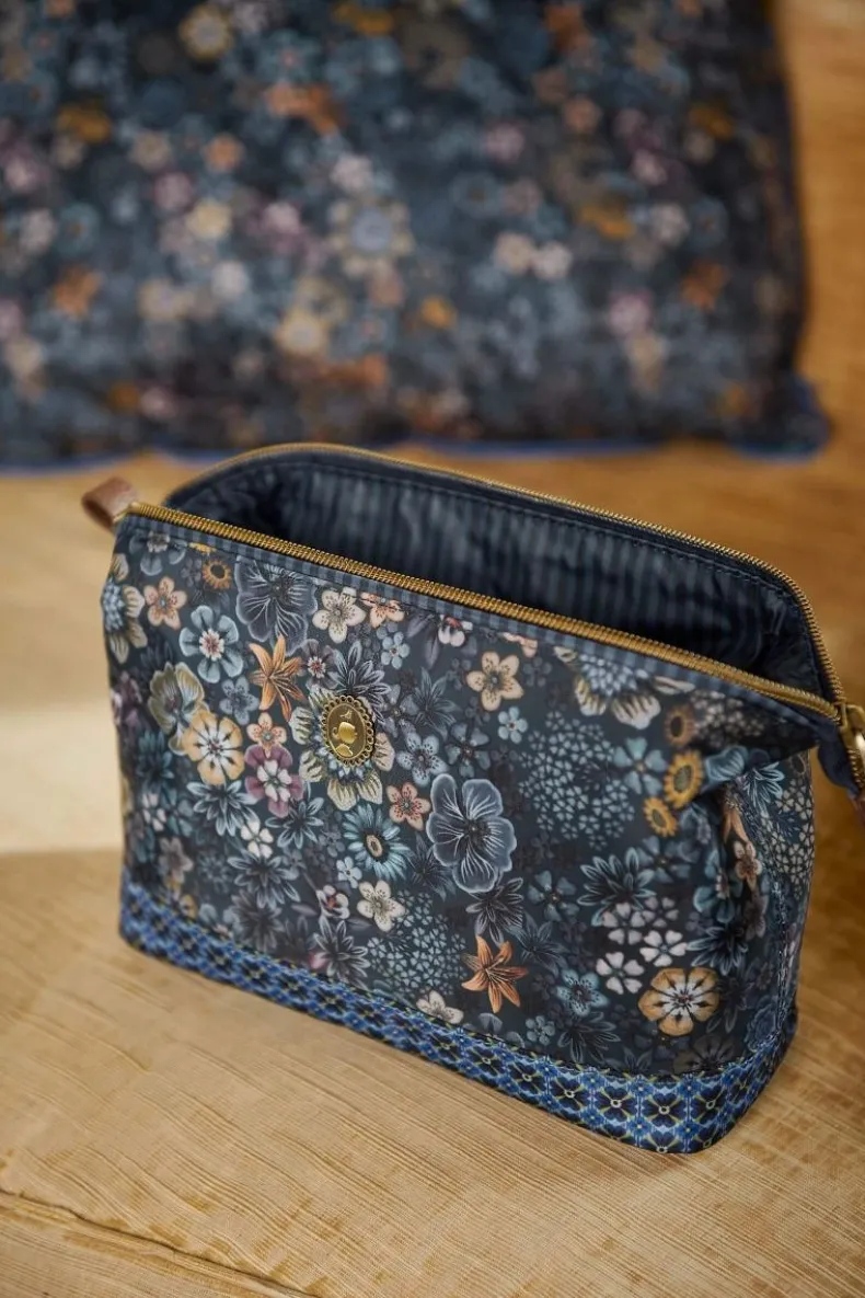 Met Deze Blauwe Toilettas Uit De Tutti I Fiori Collectie Heb Je Jouw Favoriete Verzorgingsproducten Altijd Binnen Handbereik. De Toilettas Is Versierd Met Met Een Unieke Variatie Van Fantasierijke Bloemen Heeft Aan De Onderkant Een Klavertjes Dessin. De Toilettas Heeft Een Groot Vak En Meerdere Kleine Vakjes En Is Aan De Binnenkant Afgewerkt Met Een Gestilleerd Dessin.