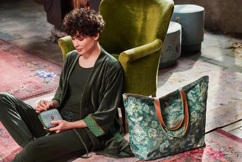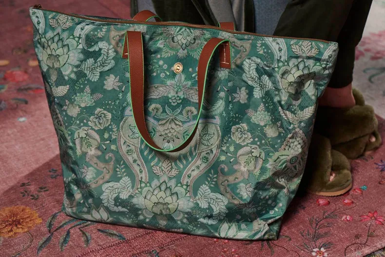 Ga De Deur Uit In Stijl Met Deze Tote Bag Uit De Kyoto Festival Collectie. De Tote Bag Is Versierd Met Een Unieke Variatie Van Fantasierijke Chintzbloemen En Bladeren En Heeft Naast Een Groot Opbergvak En Ook Meerdere Kleine Vakjes Aan De Binnekant Waarin Je Jouw Belangrijke Spullen Kunt Opbergen Zoals Je Telefoon Of Sleutels. De Tas Is Ook Te Gebruiken Als Strand Of Weekendtas.