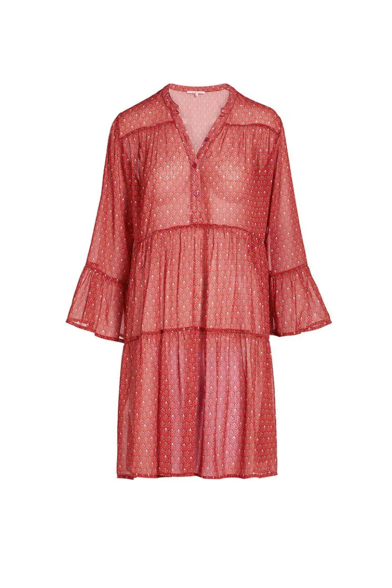 Geef Je Garderobe Een Kleurrijke Twist Met Deze Roze Dewouter Tuniek. Gedecoreerd Met Een Print Bestaande Uit Verschillende Terugkomende Boogjes. De Tuniek Heeft Verschillende Laagjes Welke Door Een Stiksel Zijn Geaccentueerd. Naast Deze Laagjes Heeft De Tuniek Ook Een Knoopsluiting En Wijd Uitlopende Mouwen. Waan Jezelf Op Een Zonnige Dag Dwarrelend Over Het Strand In Deze Heerlijk Zachte Tuniek. Mix & Match Deze Tuniek Met Een Van Onze Strand Accessoires Voor Een Prachtige Zomerse Look.