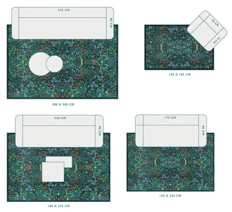 Het Jungle Animals Vloerkleed Is Gedecoreerd Met Een Botanisch Dessin Op Een Blauwgroene Achtergrond. Het Dessin Bestaat Uit Exotische Dieren Van Aapjes Tot Vlinders En Kleurrijke Bloemen. Het Kleed Is Geprint En Is Te Combineren In Veel Woonstijlen.