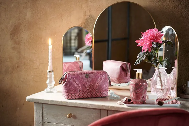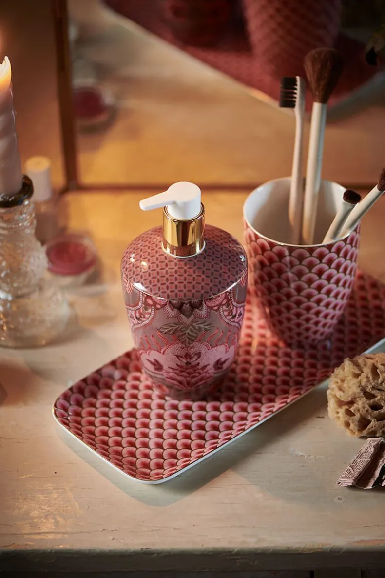 Maak Je Badkamer Compleet Met Deze Badkamer Set Uit De Kyoto Festival Collectie. De Set Bestaat Uit Drinkbeker, Zeeppompje En Een Badkamerschaal En Is Gedecoreerd Met Een Dessin Van Gestileerde Boogjes En Een Variatie Van Fantasierijke Chintzbloemen En Bladeren. In Deze Set Komen De Suki En Kyoto Festival Dessins Samen.