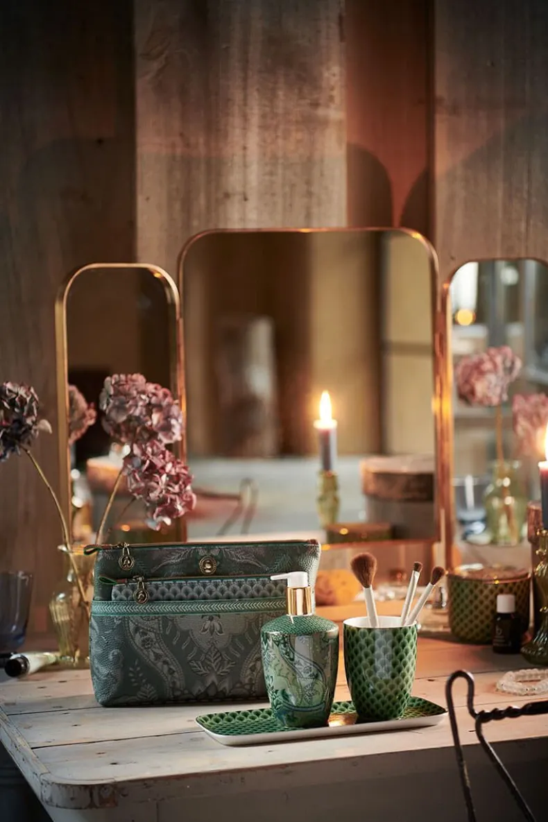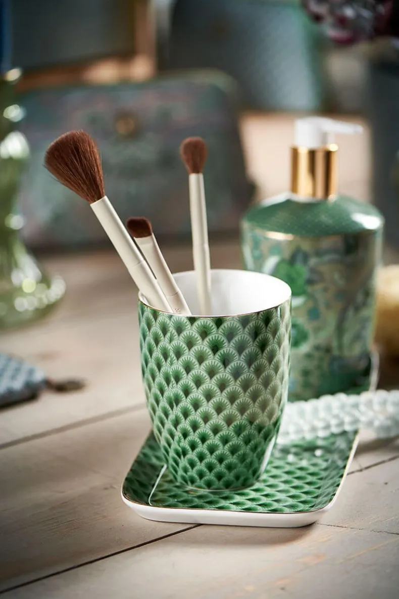 Maak Je Badkamer Compleet Met Deze Drinkbeker Uit De Suki Collectie. De Beker Heeft Een Dessin Van Gestileerde Boogjes En Is Afgewerkt Met Een Gouden Rand.