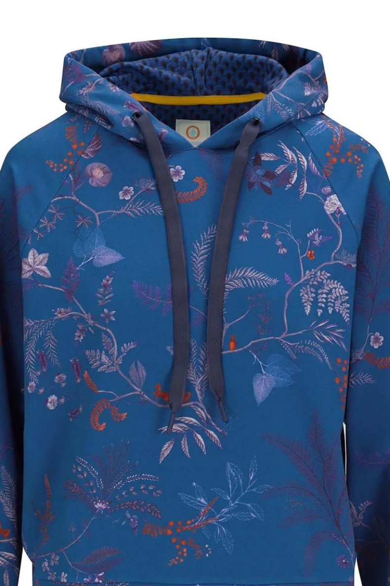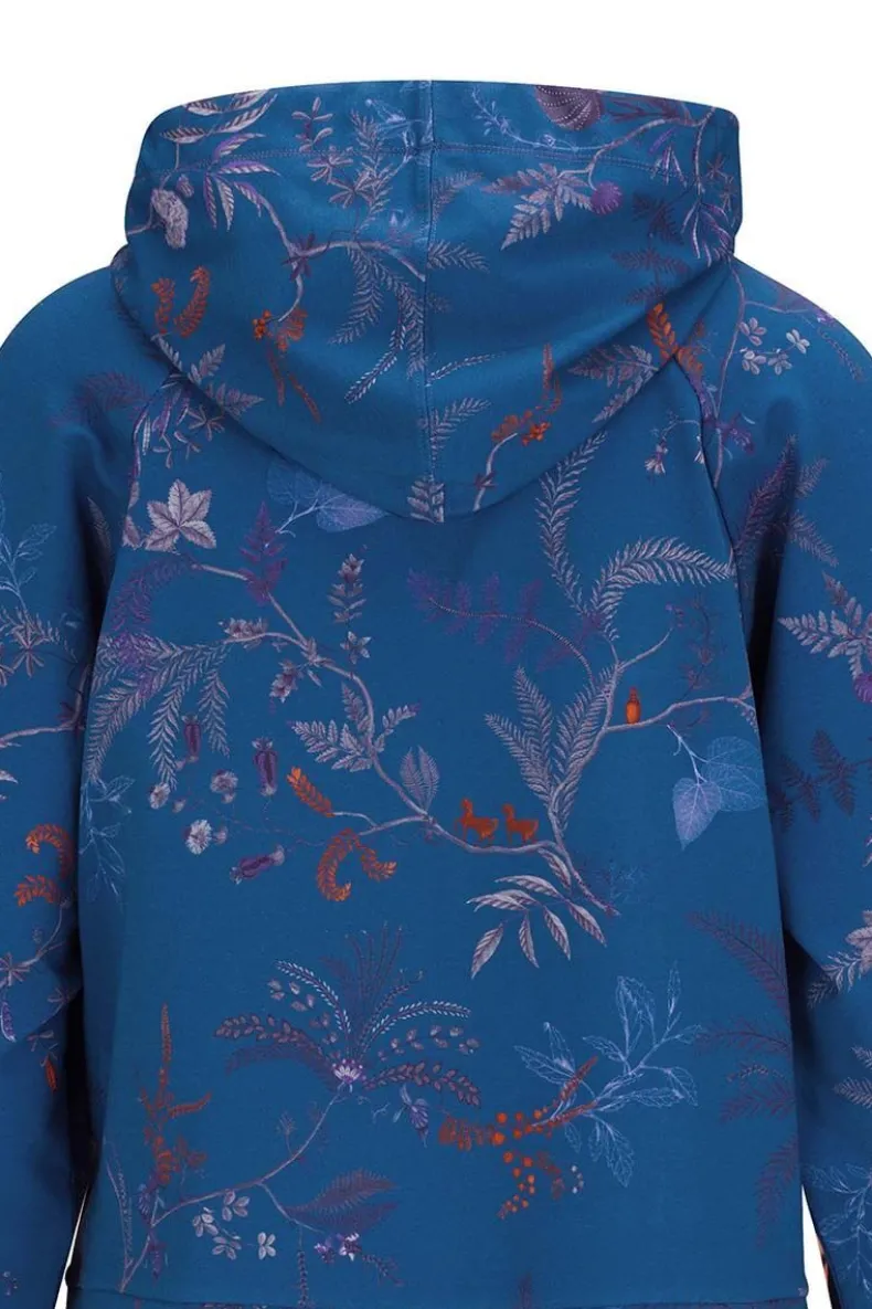 Deze Hoodie In De Kleur Blauw Is Uitgevoerd Met Het Speelse Isola Dessin. De Print Is Opgebouwd Uit Een Verfijnde Print Van Meerkleurige Takjes En Varens. De Hoodie Bevat Een Capuchon En Bijpassende Touwtjes.