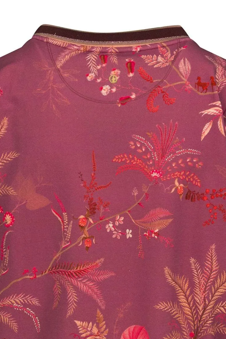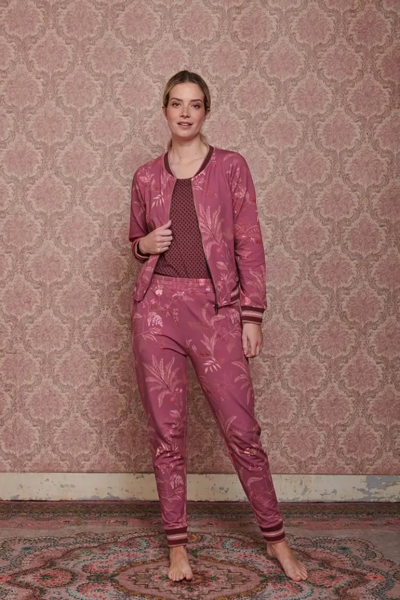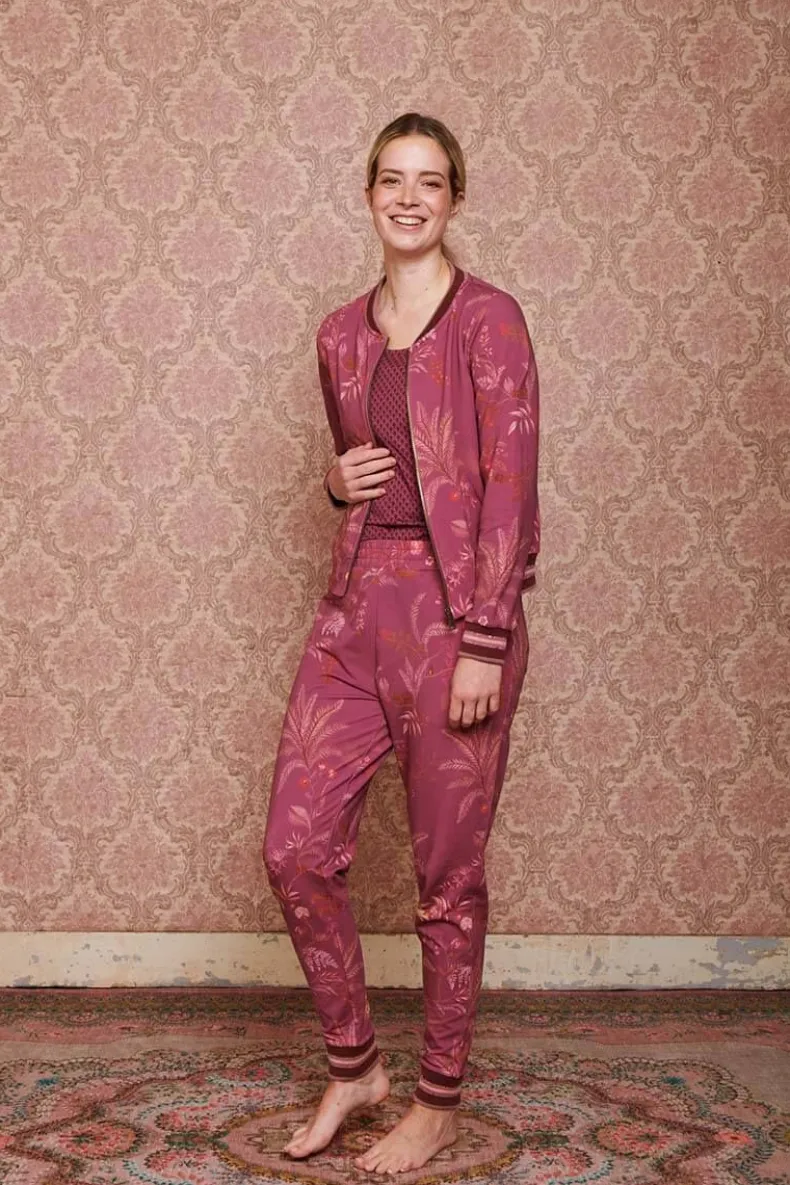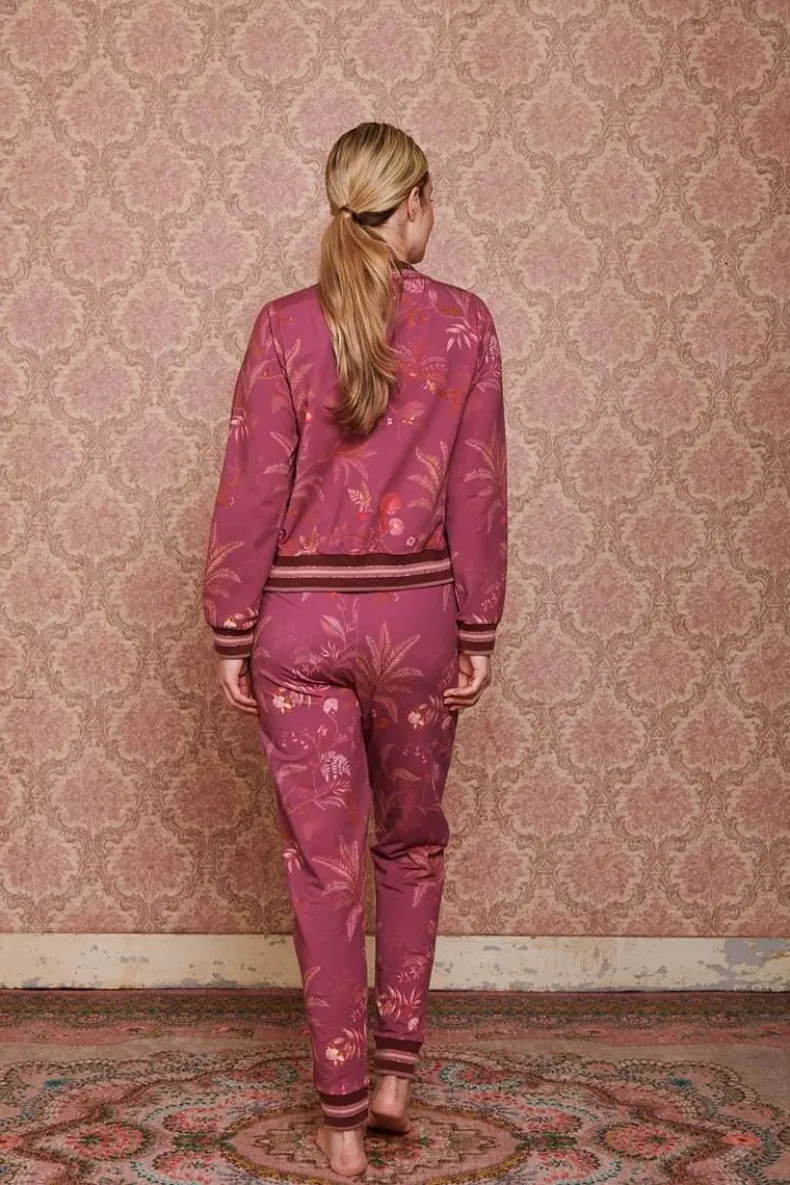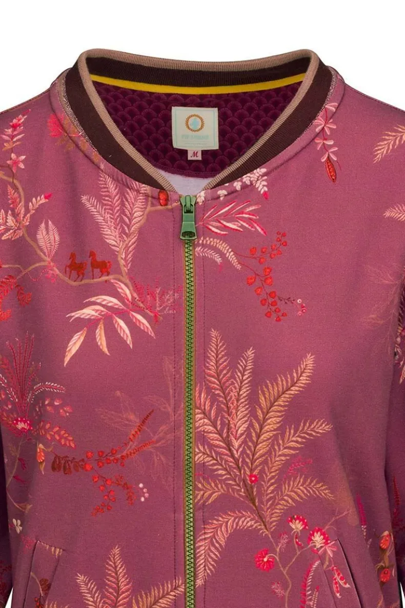 Deze Jas In De Kleur Roze Is Uitgevoerd Met Het Speelse Isola Dessin. De Print Is Opgebouwd Uit Een Verfijnde Print Van Meerkleurige Takjes En Varens. De Biesjes Zijn Versierd Met Geel En Beige Strepen Met Glitters.