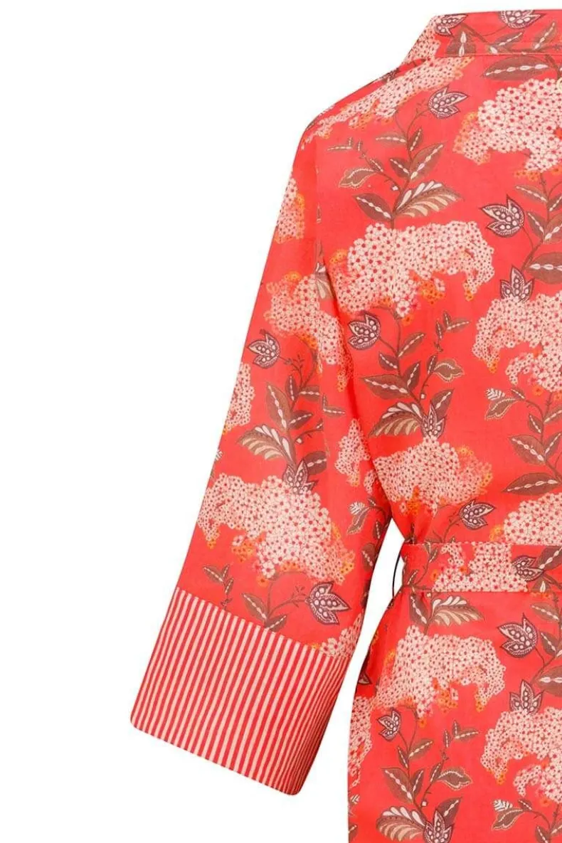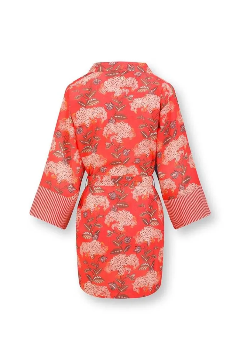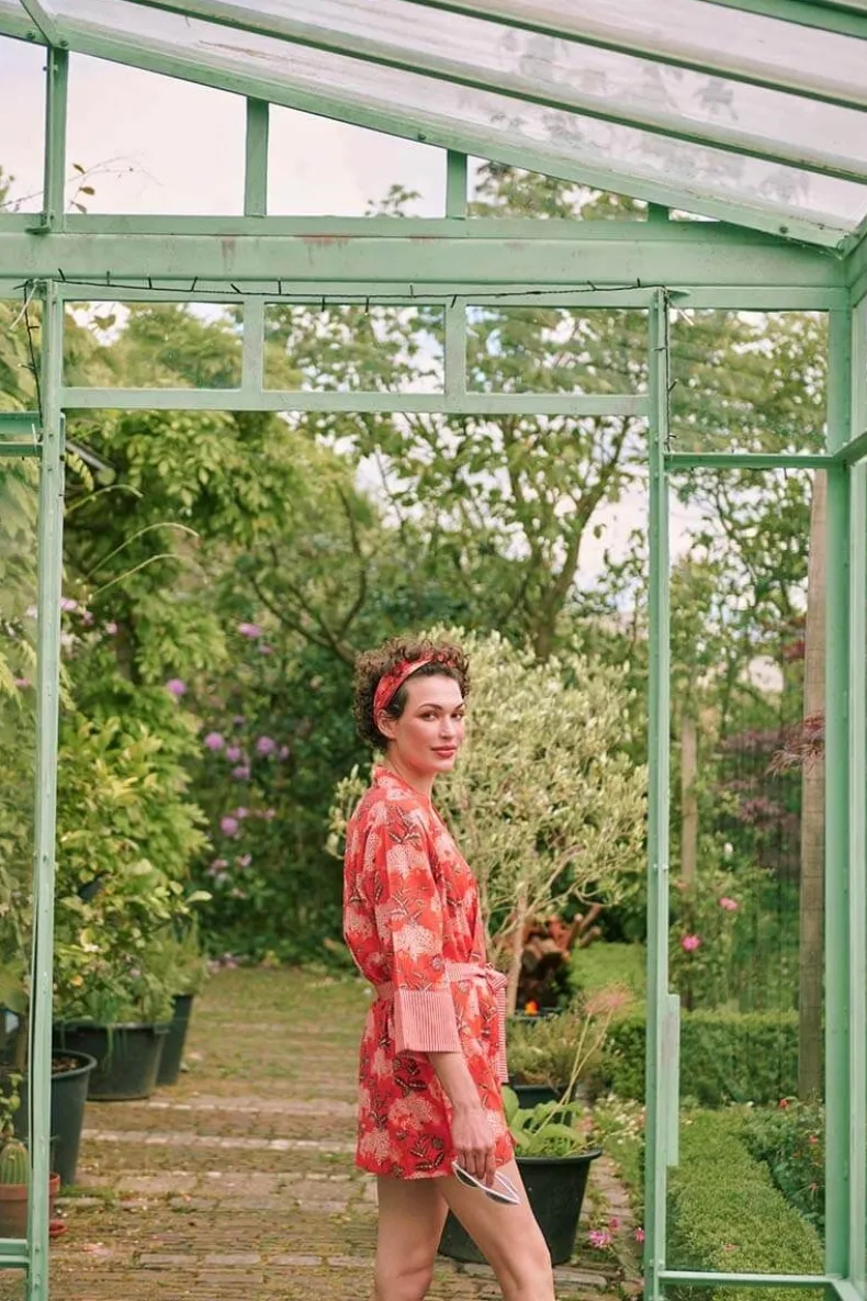 De Korte Kimono Is Jouw Zomer Musthave! De Prachtige Bloemenprint Flora Firenze Fleurt Je Dag Meteen Op. De Manchetten En Riem Zijn Afgewerkt Met Little Sumo Stripe Dessin. Verbeeldt Jezelf Eens Voor Op Een Zonnige Dag Op Het Terras. Deze Koraalroze Kimono Neemt Je Mee Naar Die Zomerdromen En Is Perfect Voor Alle Gelegenheden.Je Kan De Kimono Ook Perfect Combineren Met Een Spijkerbroek, Of Casual Op Het Strand Als Cover-Up. De Mogelijkheden Zijn Eindeloos!