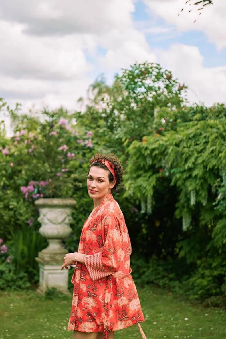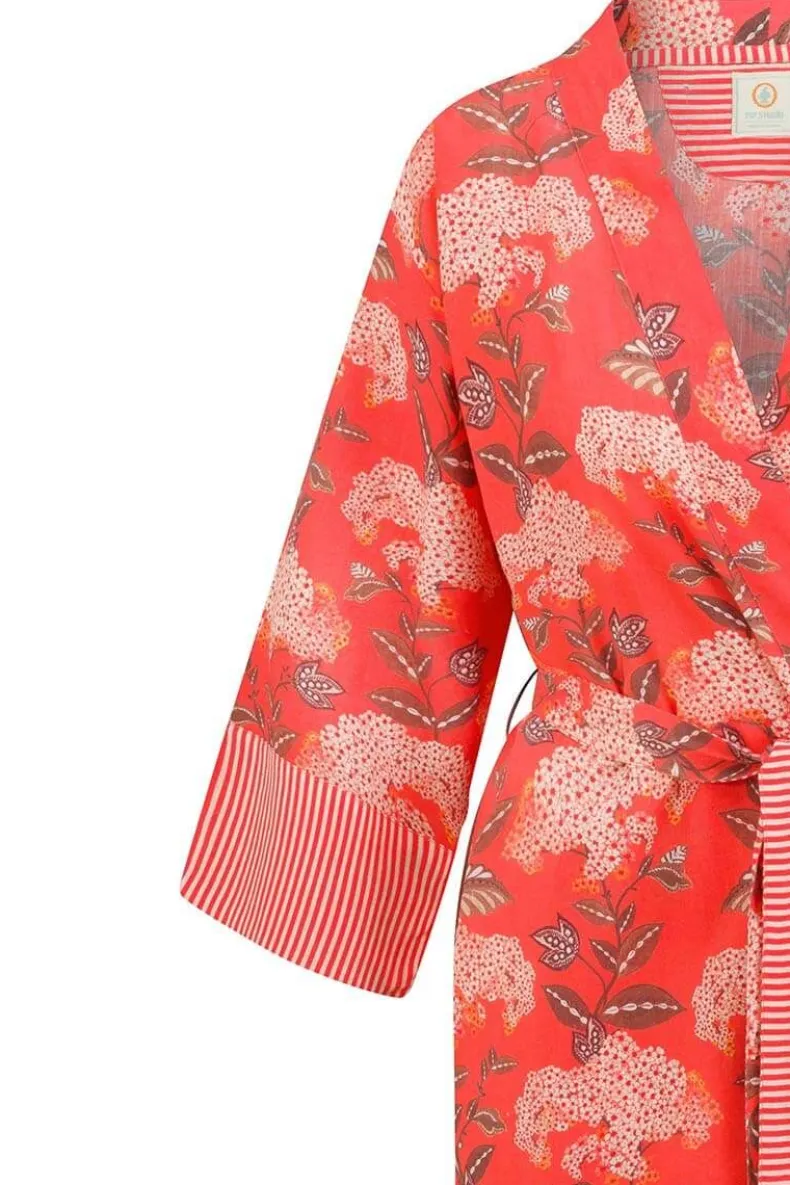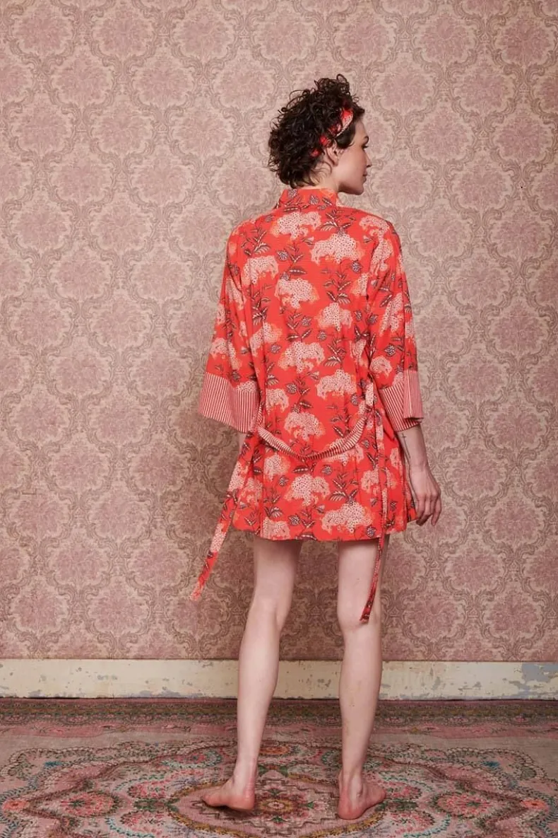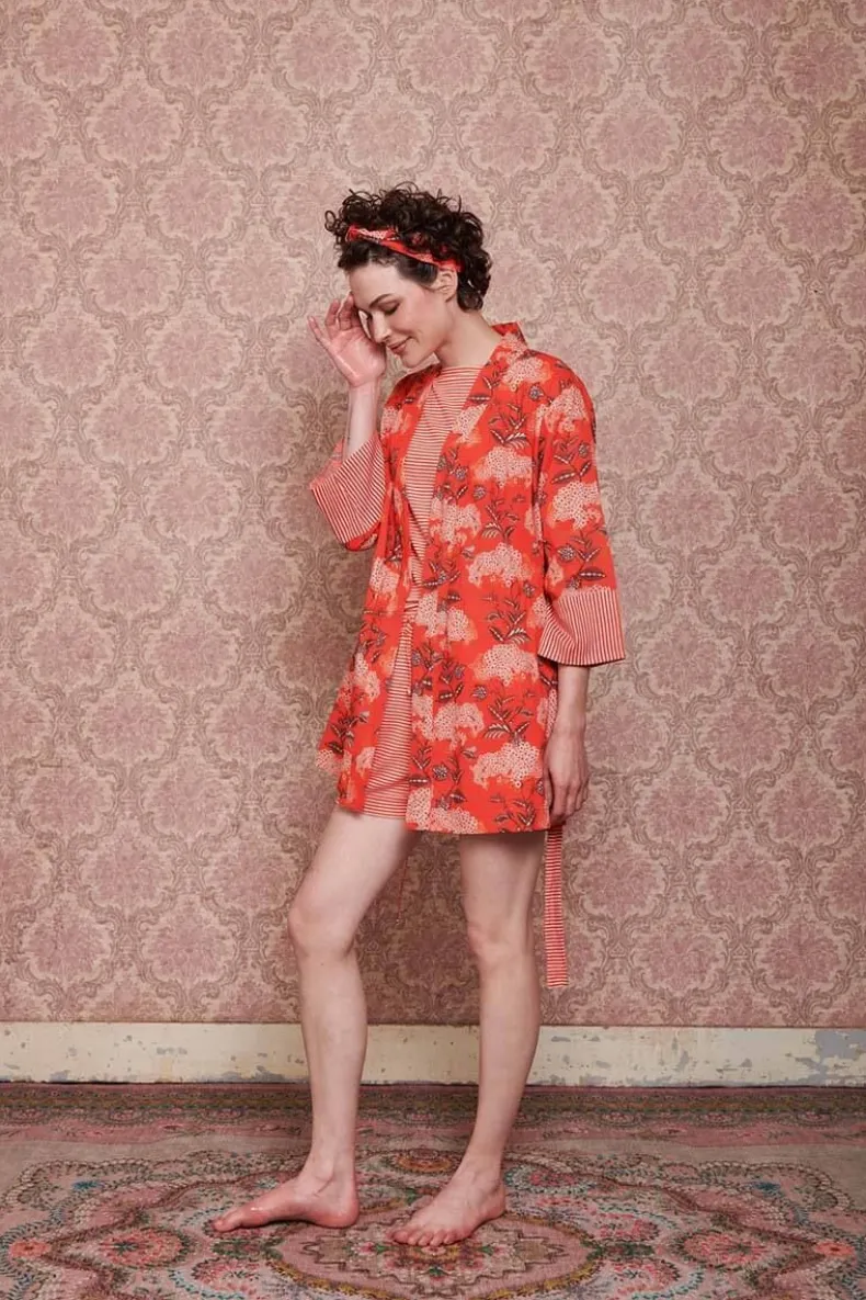 De Korte Kimono Is Jouw Zomer Musthave! De Prachtige Bloemenprint Flora Firenze Fleurt Je Dag Meteen Op. De Manchetten En Riem Zijn Afgewerkt Met Little Sumo Stripe Dessin. Verbeeldt Jezelf Eens Voor Op Een Zonnige Dag Op Het Terras. Deze Koraalroze Kimono Neemt Je Mee Naar Die Zomerdromen En Is Perfect Voor Alle Gelegenheden.Je Kan De Kimono Ook Perfect Combineren Met Een Spijkerbroek, Of Casual Op Het Strand Als Cover-Up. De Mogelijkheden Zijn Eindeloos!
