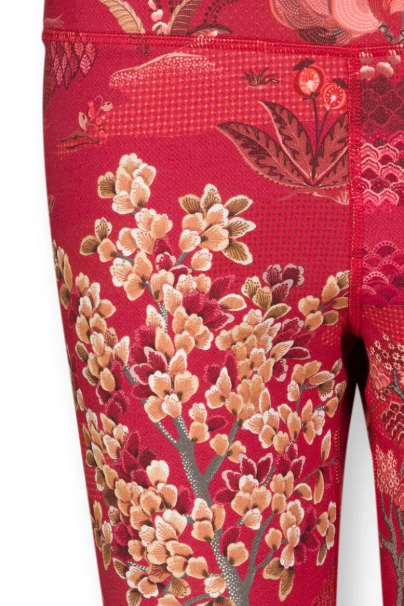 Geef Je Sport Garderobe Een Kleurrijke En Trendy Twist Met Deze Comfortabele, Korte, Rode Sportbroek. Doordat De Broek Een Grote Hoeveelheid Elastaan Bevat, Past Deze Zich Precies Aan Op Jouw Lichaam. Laat Je Betoveren Door De Elegante Japanese Garden Print. Het Rijke Japanese Garden Dessin Heeft Een Verfijnde Print Van Verschillende Bomen, Planten En Elegant Geplaatste Bladeren. De Uitgewerkte Bloementakjes Geven De Print Extra Diepte En Zorgen Voor Een Luxe Uitstraling. De Broek Heeft Een Extra Band Boven De Taille Waardoor Er Een Mid-Waisted Model Wordt Gecreeerd. Mix & Match Deze Broek Met Een Van Onze Sport Tops Voor Een Prachtige Sportieve Outfit.