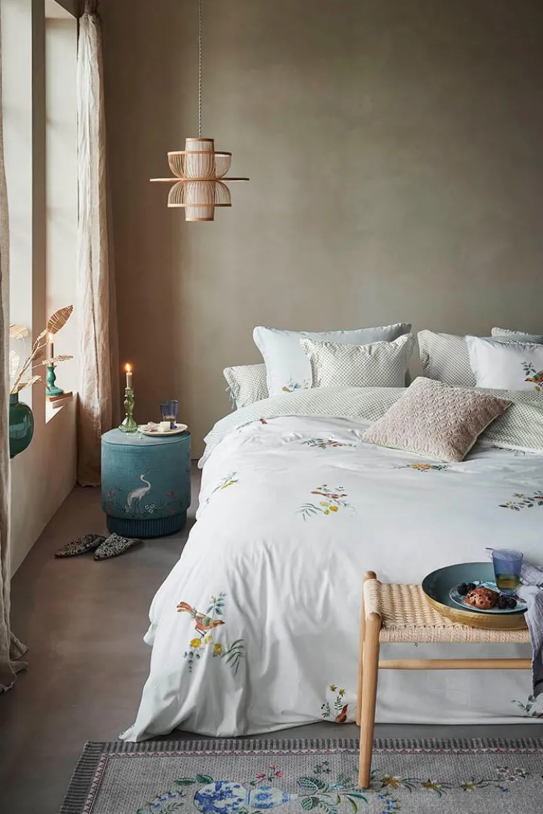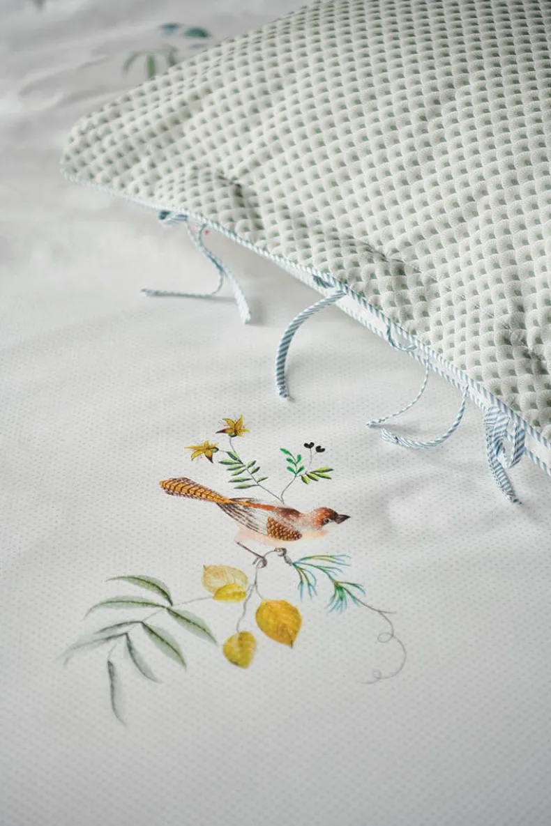 Dit Kussensloop In Wit Is Geprint Met Het Little Birds Dessin. Deze Print Is Opgebouwd Uit Verschillende Soorten Versierde Vogeltjes En Bloemen Takken. Het Kussen Bevat Een Doorgestikte Rand En Striksluiting. De Achterkant Is Geprint Met Een Boogjes Dessin, Hierdoor Kan Het Kussen Dubbelzijdig Gebruikt Worden.