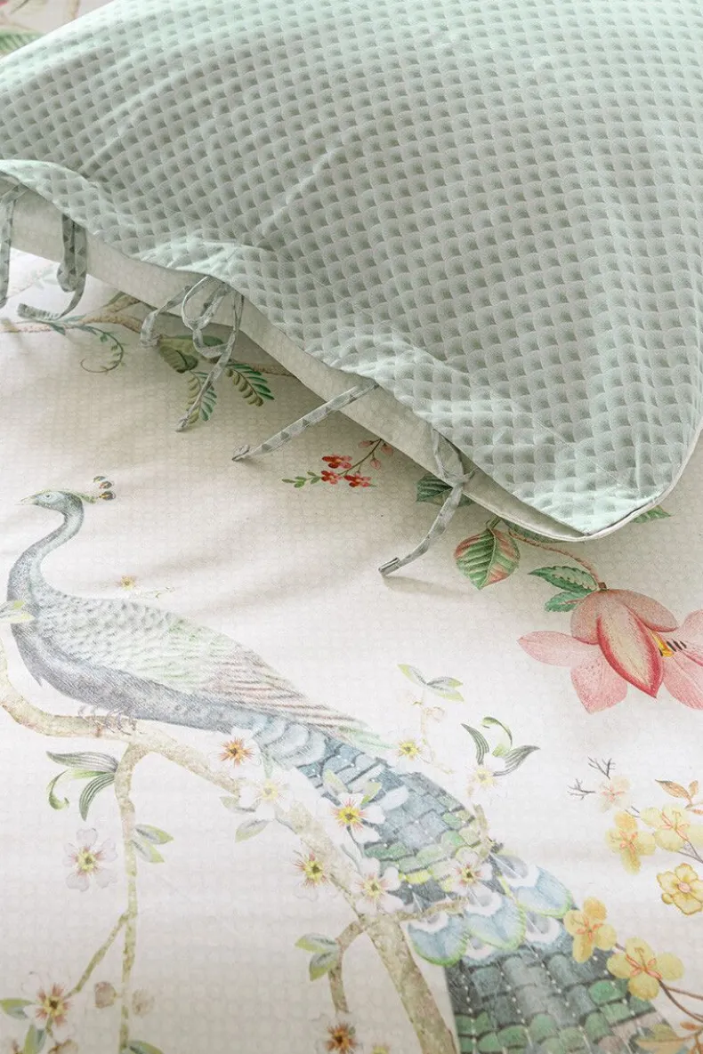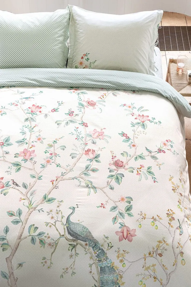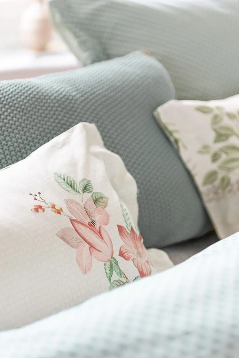 Dit Romantische Witte Okinawa Kussensloop Is Geinspireerd Op Oosterse Chinoiserie-Prints. Japanse Bloesem Decoreert Dit Kussensloop. De Zachte Kleur Van Dit Sierkussen Zorgt Ervoor Dat Het Een Rustige Maar Elegante Uitstraling Geeft Op Je Bed.