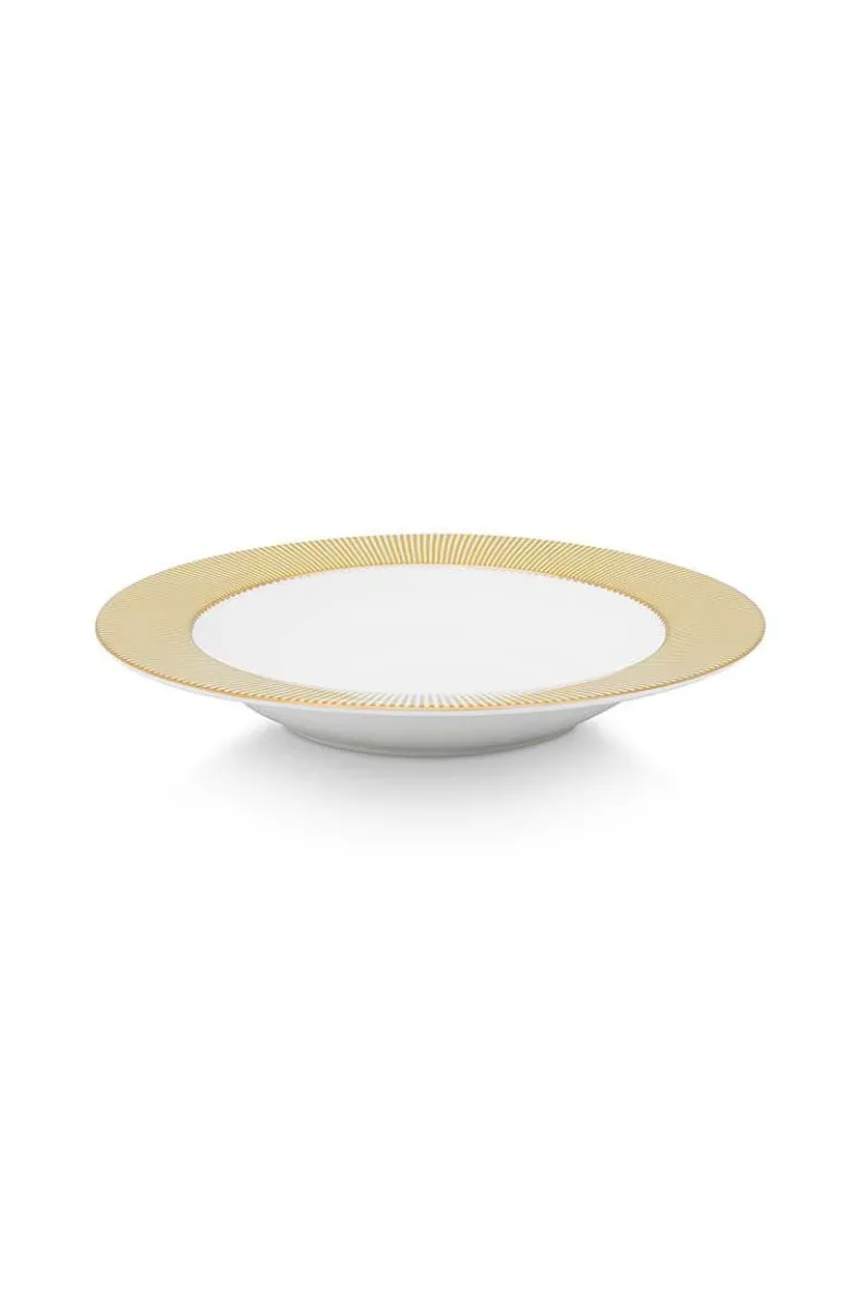 Dit Gele Diepe Bord Is Gemaakt Van Hoogwaardig Porselein En Versierd Met Gele En Witte Strepen. Elke Rand Heeft Gouden Details. Vormt Een Mooie Combinatie Met De Rest Van Het Diner Servies Uit De La Majorelle Collectie.