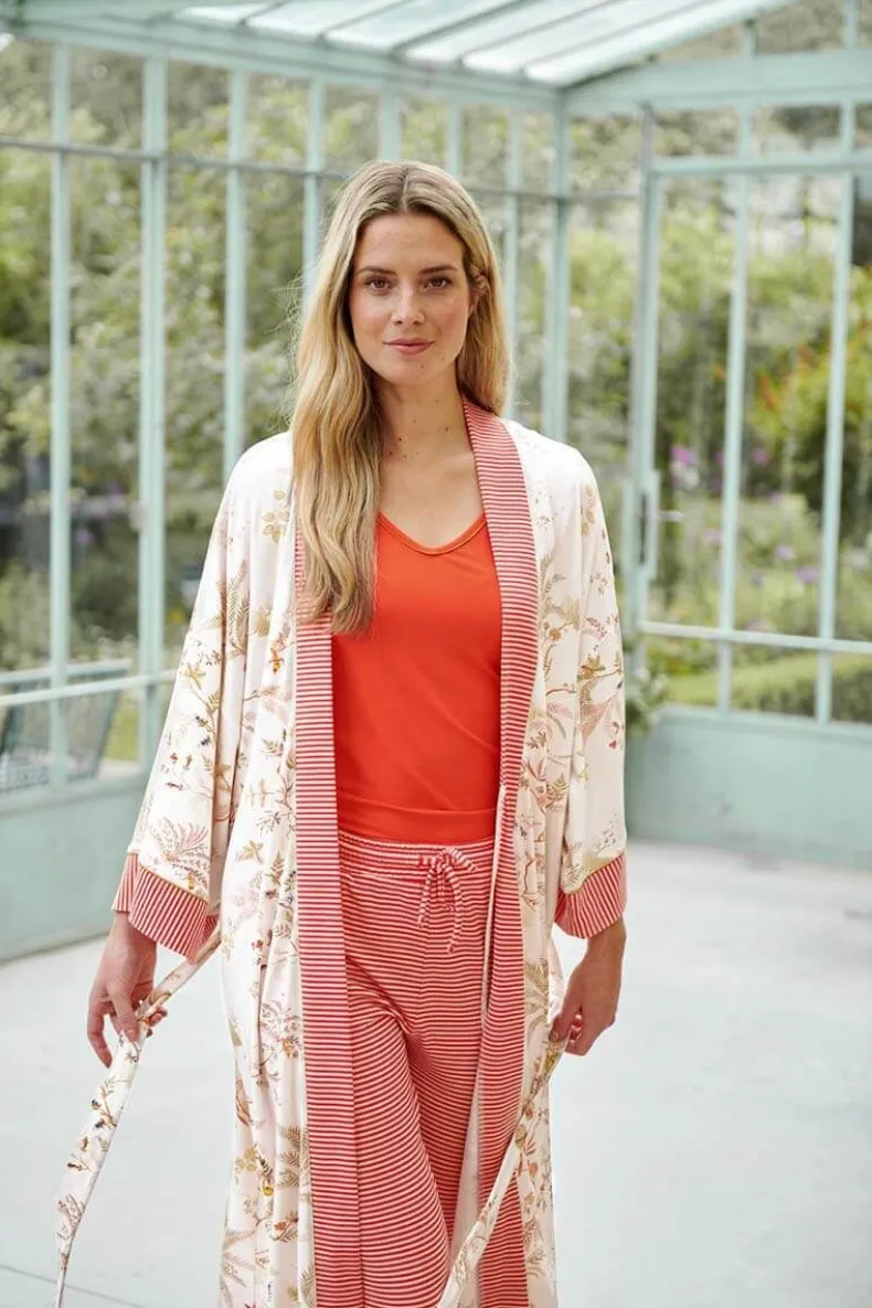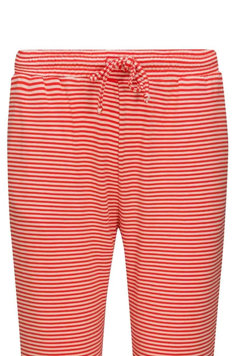 Deze Lange Broek In Het Koraalroze Is Uitgevoerd Met Het Vrolijke Gestreepte Little Sumo Stripe Dessin. Het Herhaalde Dessin Is Opgebouwd Uit Symmetrische Horizontale Strepen. Gemaakt Van Viscose, Polyester En Elastane Waardoor De Broek Heerlijk Zacht En Stretchy Is. De Taille Is Elastisch En Heeft Een Koord Rondom Voor Een Comfortabele Fit. Mix En Match Deze Broek Met Items Uit De Nieuwe Homewear Collectie Voor Een Mooie Look.