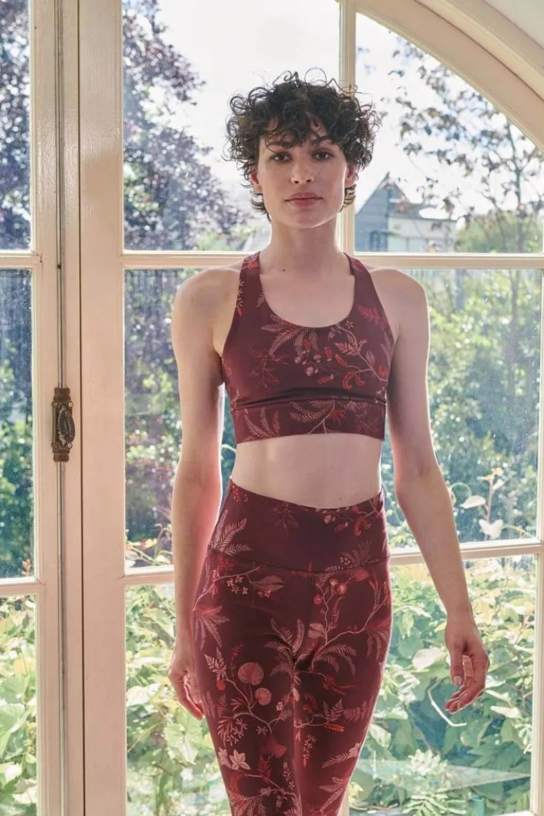Deze Lange Sportlegging In Het Donkerrood Is Uitgevoerd Met Het Vrolijke Speelse Isola Dessin. De Sportlegging Heeft Een Verfijnde Print Van Meerkleurige Takjes En Varens. De Kleuren Van De Broek Zijn Zacht Met Subtiele Kleuraccenten. De Legging Is Gemaakt Van Een Elastische Stof Voor Een Comfortabele En Flaterende Fit.