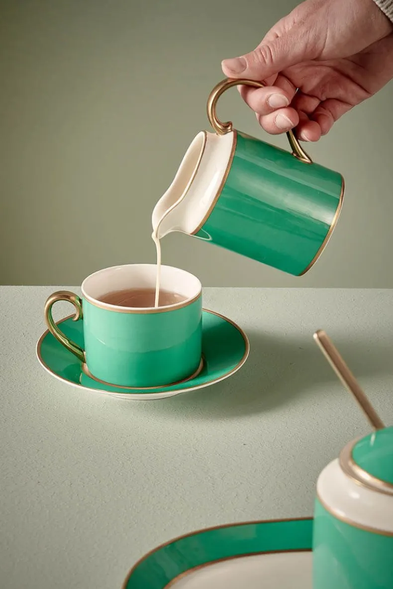 De Perfecte Aanvulling Voor Bij De Thee Of Koffie, Deze Groene Kleine Kan Uit De Pip Chique Collectie. De Groene Kan Is Gedecoreerd Met Een Gouden Handvat Voor Een Luxe Uitstraling. Je Kunt De Kan Perfect Mixen En Matchen Met De Rest Van Onze Pip Chique Collectie. Het Porselein Is Gemaakt Van Bone China, Een Hoogwaardig Dun Porselein Met Een Verfijnd Design.