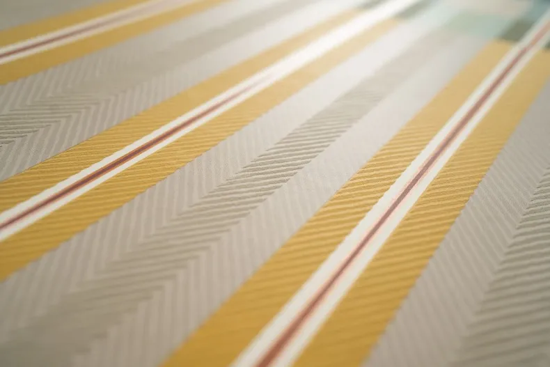 Wat Het Beige/Gele Blurred Lines Dessin Een Blikvanger Op Je Muur Maakt? Het Strepen Dessin Blurred Lines Heeft Een Grafische Streep Met Chevron Patroon. Deze Grafische Streep In Structuur Heeft Een Heel Subtiel Glanzend Streepje En Is Door De Uitgesproken Kleurstellingen Een Echte Pip Streep. Het Blurred Lines Dessin Is Makkelijk Te Combineren Met Bijna Alle Andere Dessins Uit De Collectie, Waardoor Er Een Leuk Mix & Match Effect Ontstaat. Het Pip Studio Blurred Lines Behang Is Verkrijgbaar In Verschillende Kleuren: Khaki/Roze, Oker/Karamel, Donkerblauw, Groen En Beige En Creeert Een Vrolijke Sfeer In Je Huis.