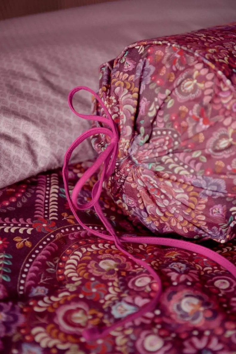 Het Dessin Van Het Il Mosaico Rolkussen Bestaat Uit Geometrische Patronen, Die Zijn Opgebouwd Uit Kleine Bloemen. De Gedetailleerde Striksluiting Maakt Het Kussen Helemaal Pip.