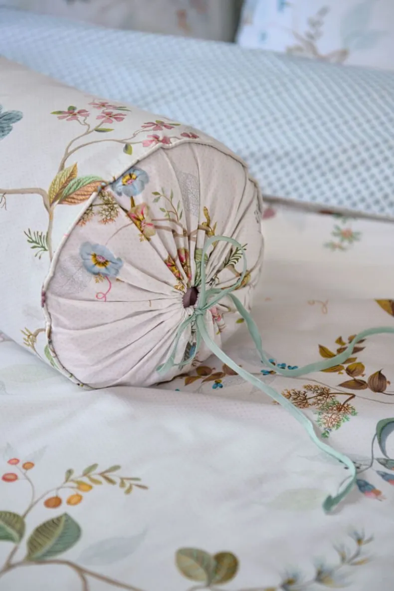 Het Bloemendessin Van Het Witte Rolkussen Kawai Flower Bestaat Uit Sierlijke Takjes Waaraan Fantasierijke Boterbloemen, Klaprozen, Anemonen En Dotterbloemen Groeien. De Bloemen En Blaadjes Hebben Verrassende Kleurcombinaties, Wat Een Moderne Twist Geeft Aan Dit Klassieke Dessin. De Gedetailleerde Striksluiting Maakt Het Kussen Helemaal Pip.