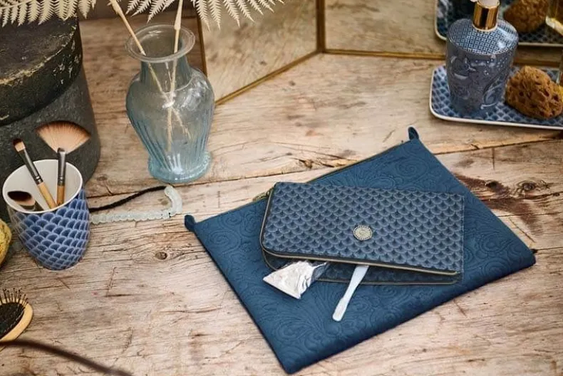 Met Deze Blauwe Toilettas Uit De Suki Collectie Heb Je Jouw Favoriete Verzorgingsproducten Altijd Binnen Handbereik. De Toilettae Heeft Een Dessin Van Gestileerde Boogjes. De Toilettas Heeft Een Groot Vak En Is Aan De Binnenkant Afgewerkt Met Een Dessin Van Gestileerde Boogjes.