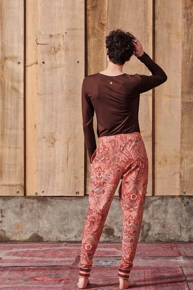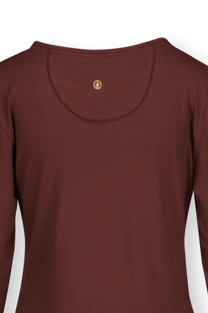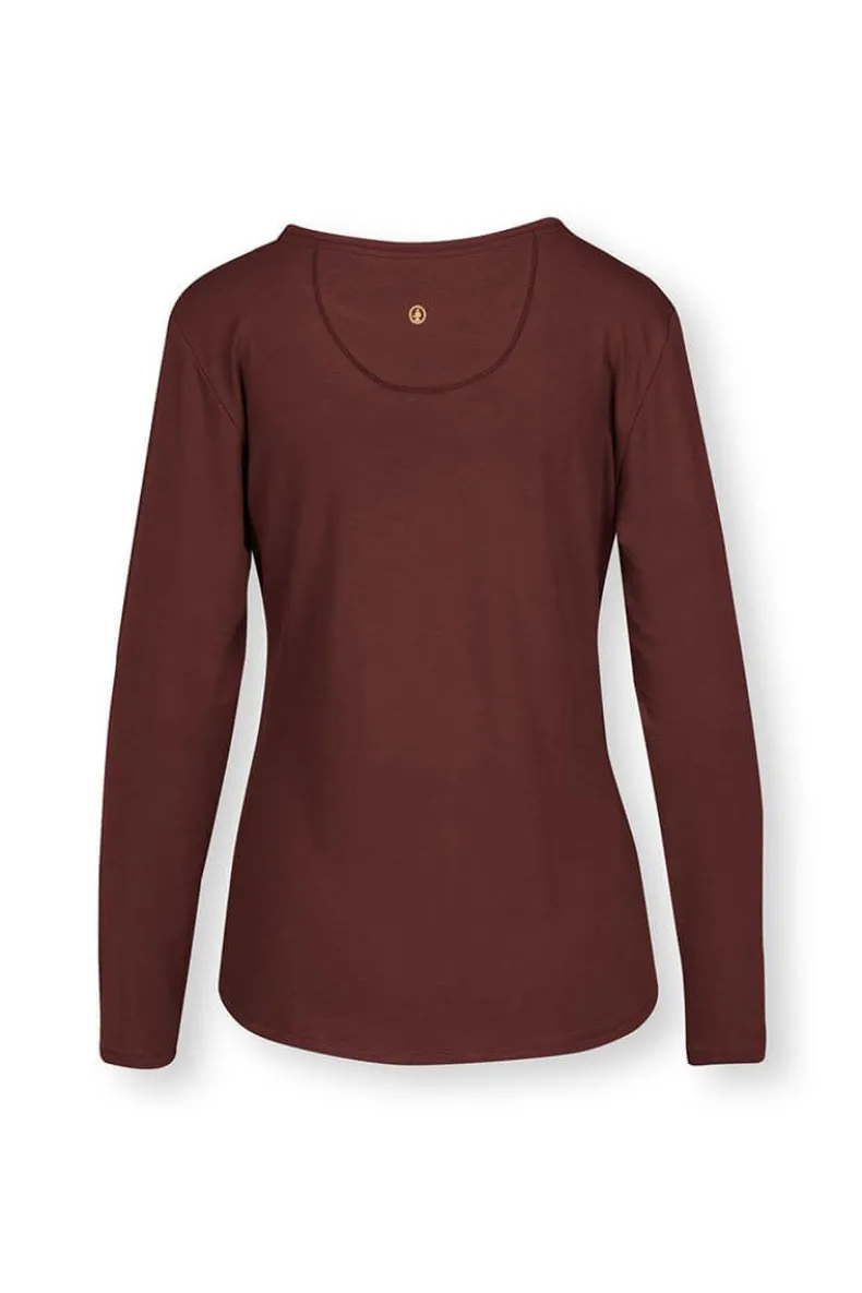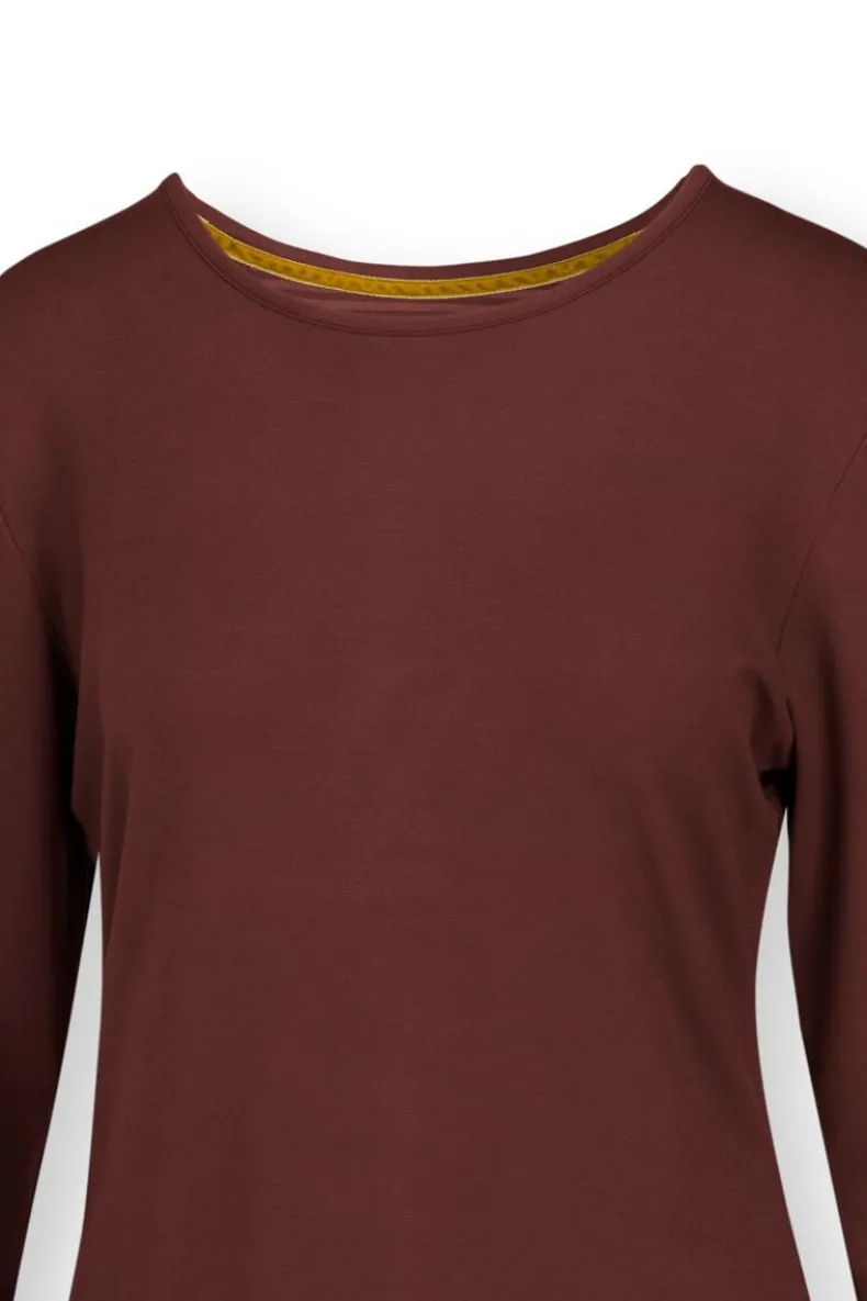 Deze Top Met Lange Mouwen In Terra Rood Is Uitgevoerd Met Het Solid Dessin. De Top Heeft Een Ronde Hals.