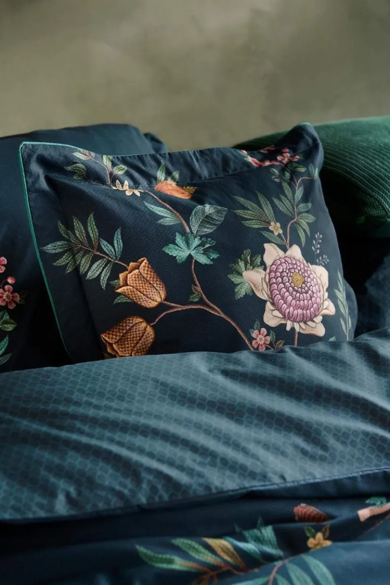 Het Vierkante Il Paradiso Sierkussen Bevat Verschilldende Fantasierijke Bloemen. Het Kussen Heeft Een Doorgestikte Oxford Rand Aan De Zijkanten, Dit Geeft Een Luxe Uitstraling. De Achterkant Van Het Sierkussen Heeft Een Patroon Van Kleine Blaadjes Met Een Gestoffeerde Knoopsluiting, Waardoor Het Kussen Tweezijdig Gebruikt Kan Worden, Zo Creeer Je Een Speels Mix & Match Effect Op Je Bed.