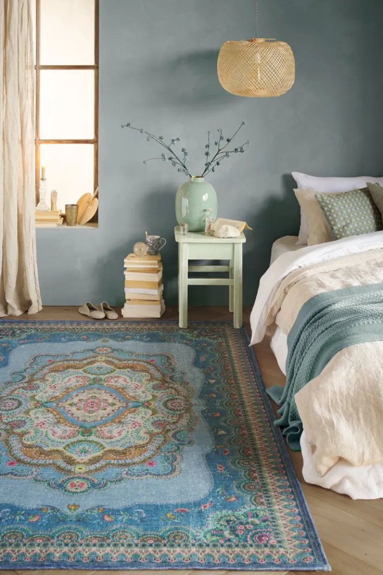 Het Majorelle By Pip Blauw Tapijt Is Geinspireerd Door Antieke En Traditionele Vloerkleden En Kreeg Een Pip Make-Over Met Een Gedetailleerd Dessin. Kleurige Bloemen Op Een Zacht Gekleurde Ondergrond Geven Het Tapijt Een Vintage Uitstraling Met Een Eigentijdse Twist. De Tapijten Worden Opgevouwen Geleverd, Waardoor Deze Bij Leveringen Vouwen Bevat. Deze Vouwen Zullen Binnen Een Paar Weken Geleidelijk Verdwijnen. Het Kleed Is Geprint En Heeft Een Authentieke Vintage Look.